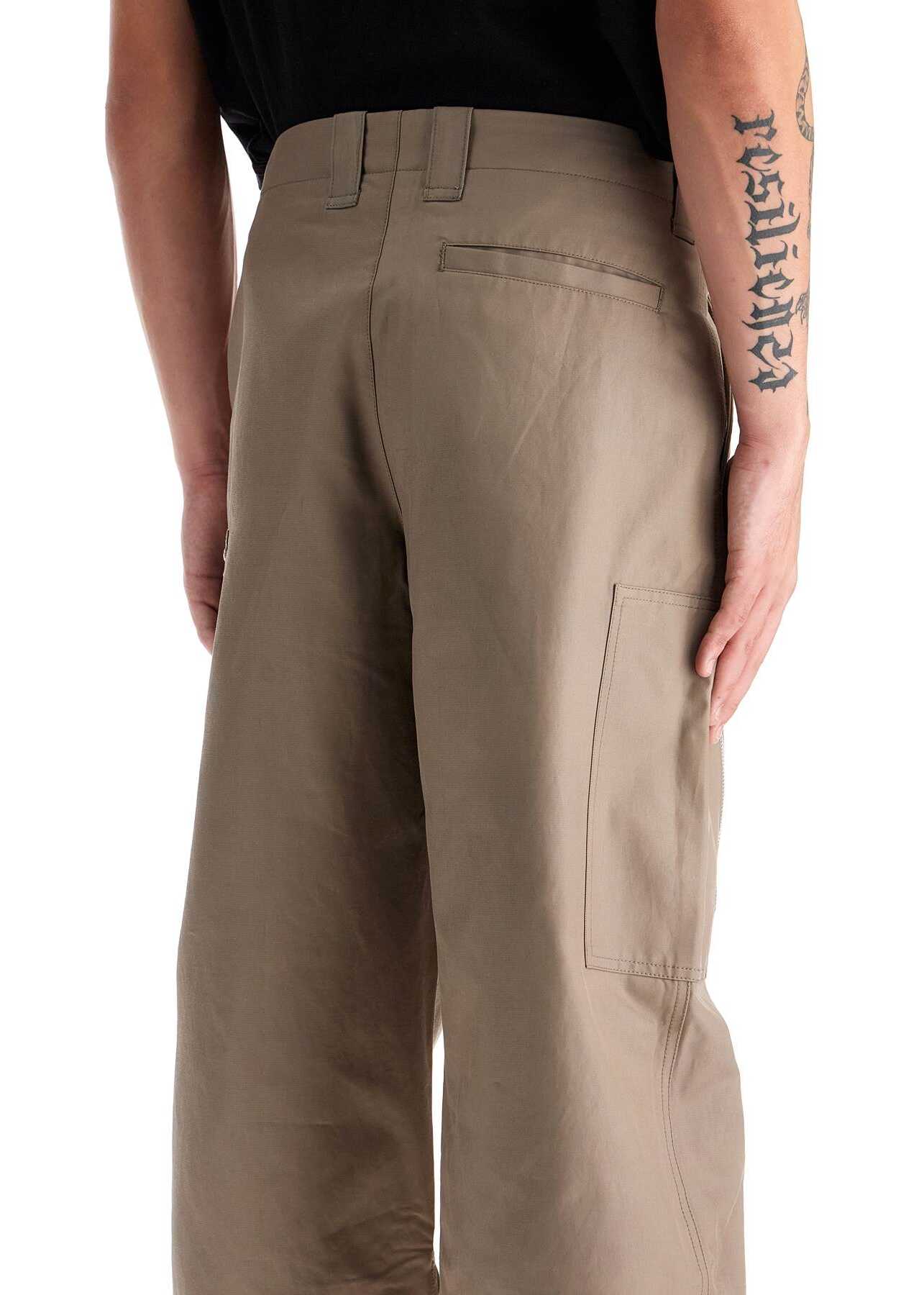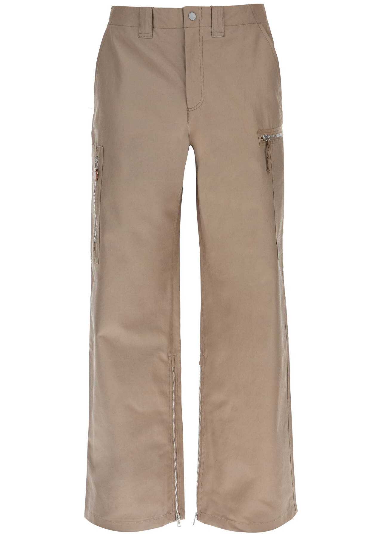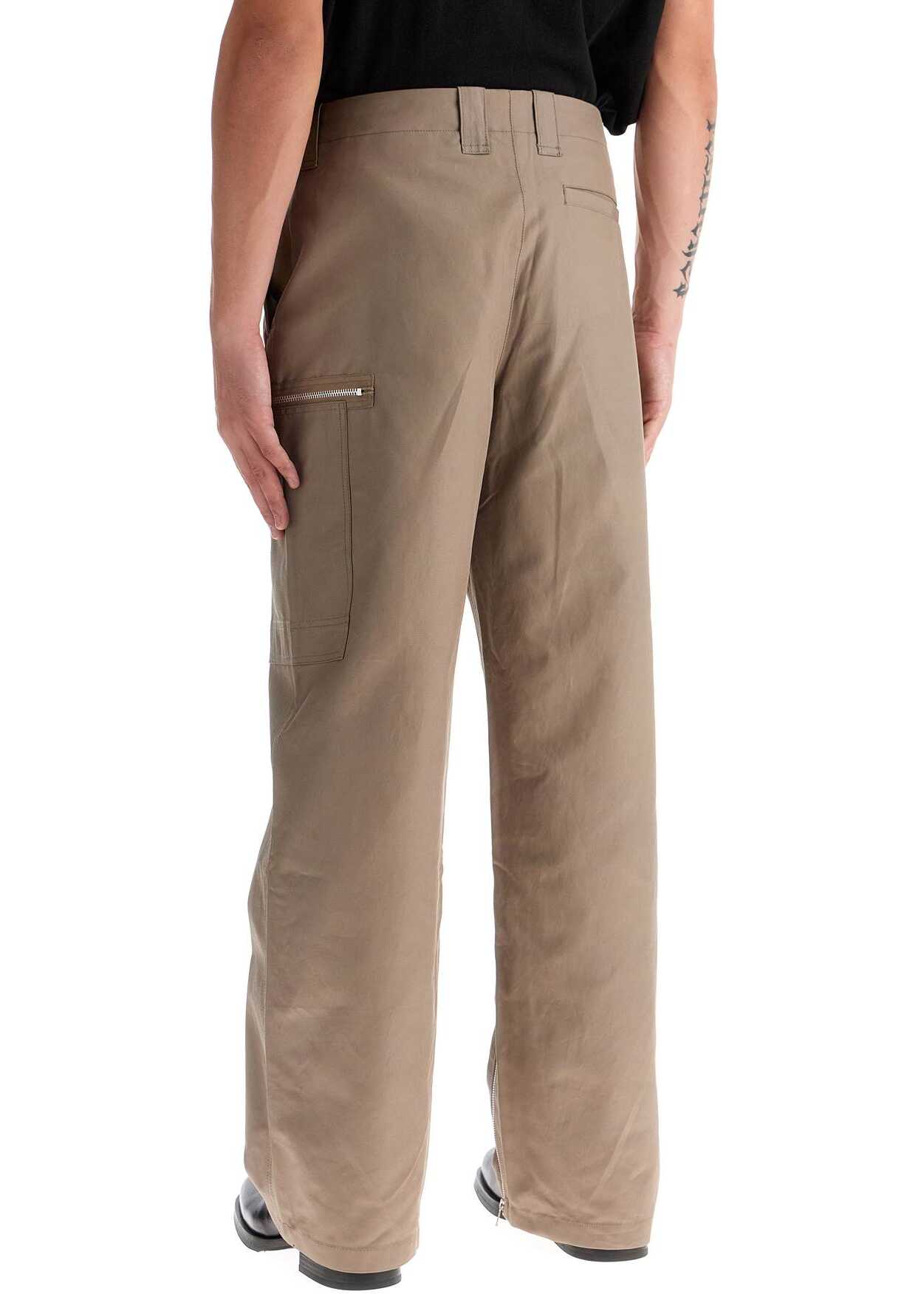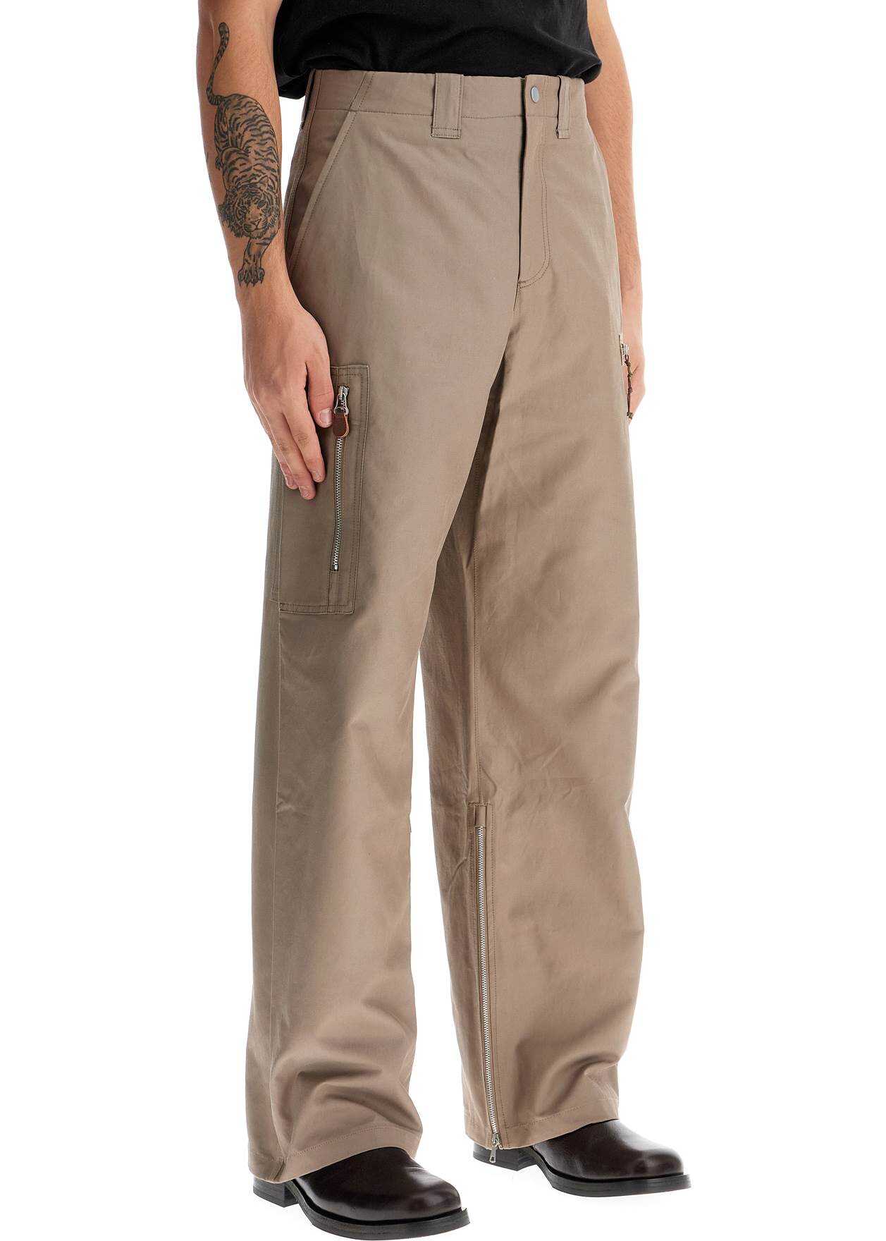 Our Legacy cargo pants made of cotton and viscose twill with a straight and relaxed fit. They feature a hidden zip and snap button closure, belt loops, slanted side pockets, one back welt pocket, and two cargo pockets with zippers on the legs. The design is finished with expandable gussets with leg bottom zippers. The model is 182 cm tall and wears size IT 48.