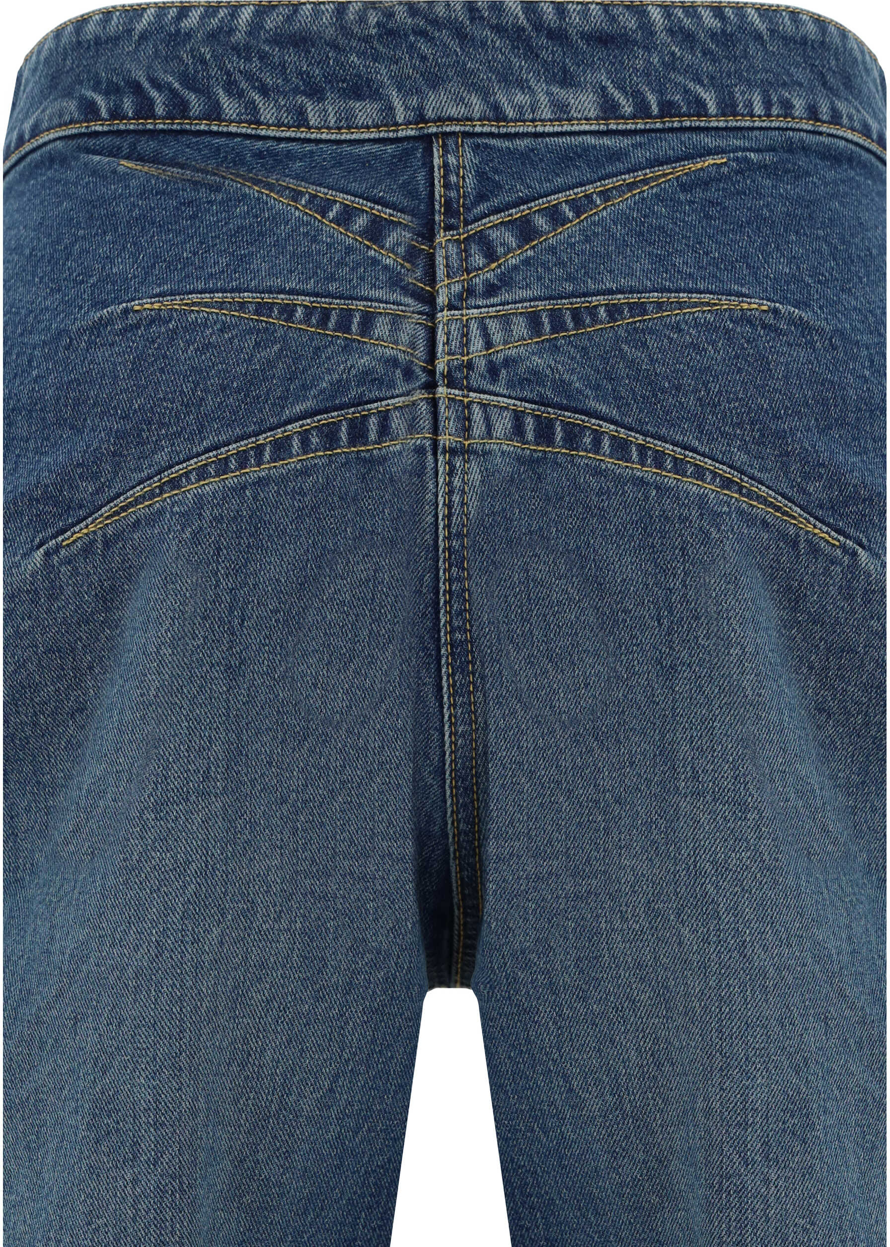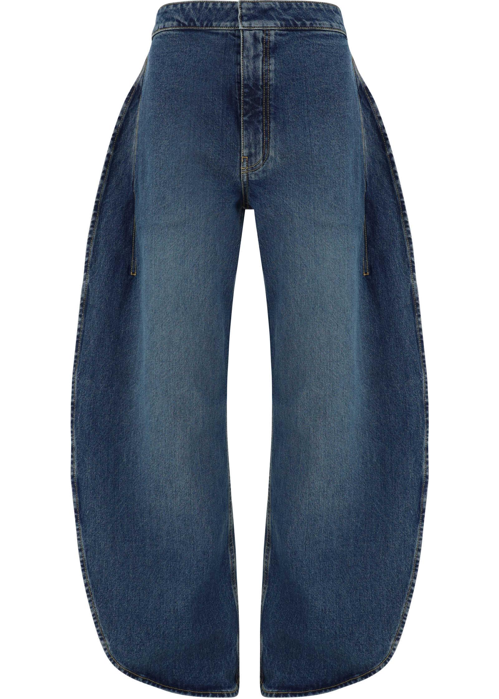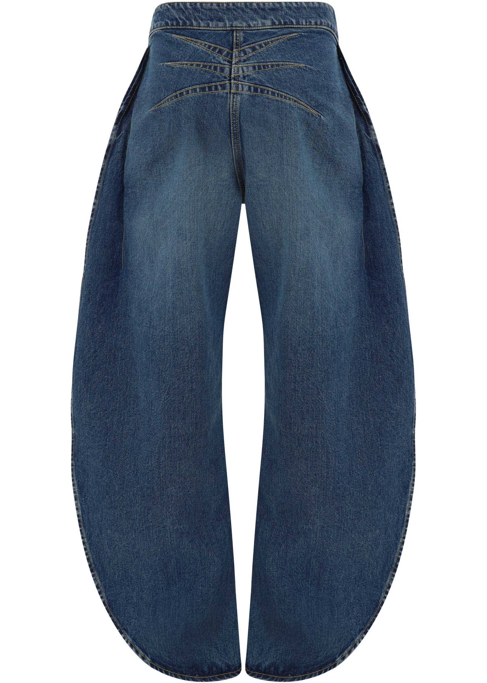 Petal Jeans by Alaïa, front zipper and hook-and-eye closure, two hidden side welt pockets, rounded petal design, two deep side slits, high waist, regular fit.