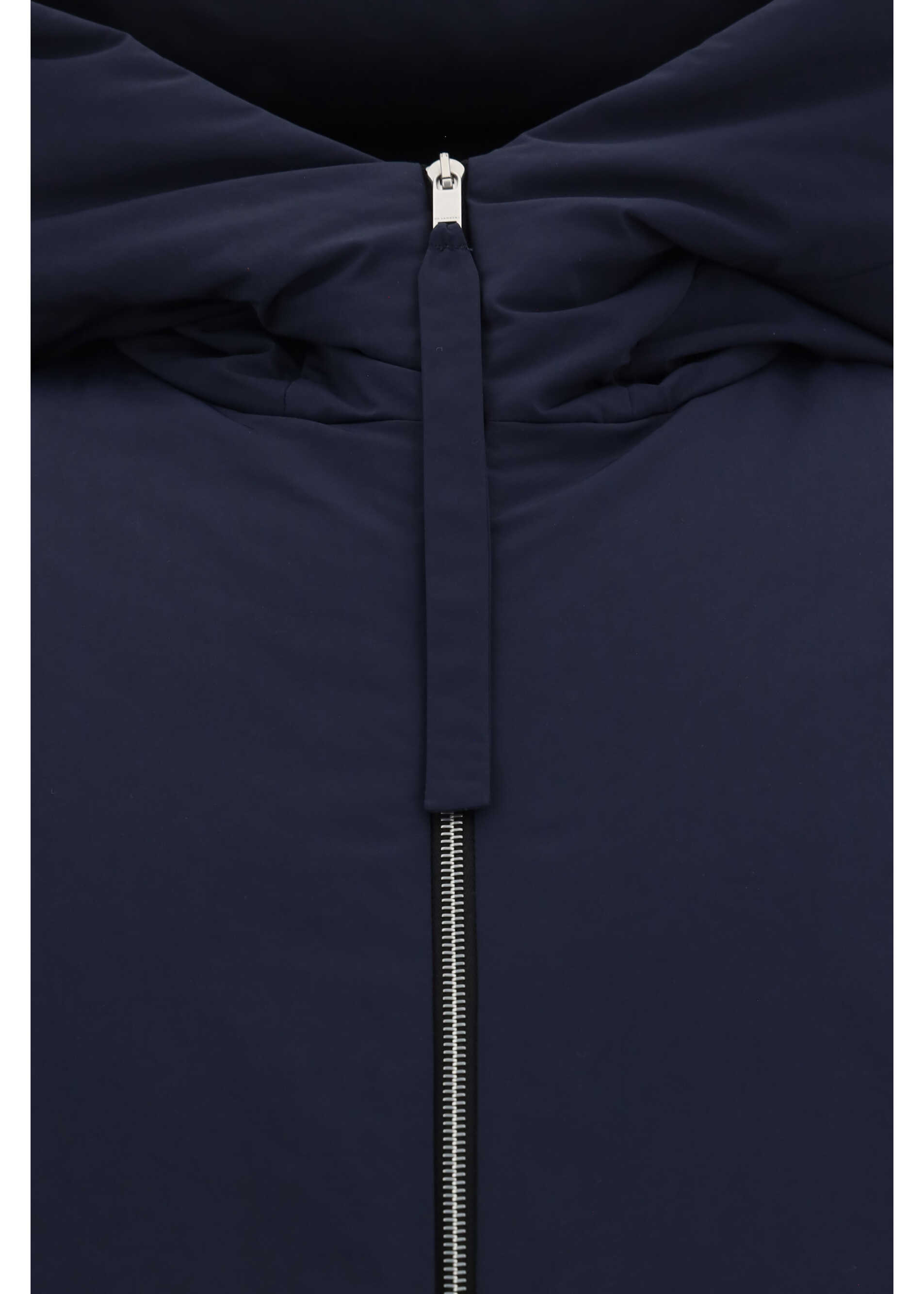 Jil Sander Down Vest ith an essential and functional design, made in a monochrome pattern. The model features a high collar with integrated hood, front closure with a double-slider zipper and two side welt pockets. The hem is adjustable via internal drawstring for a customizable fit. A versatile and contemporary garment, ideal for completing layered looks with minimalist elegance.