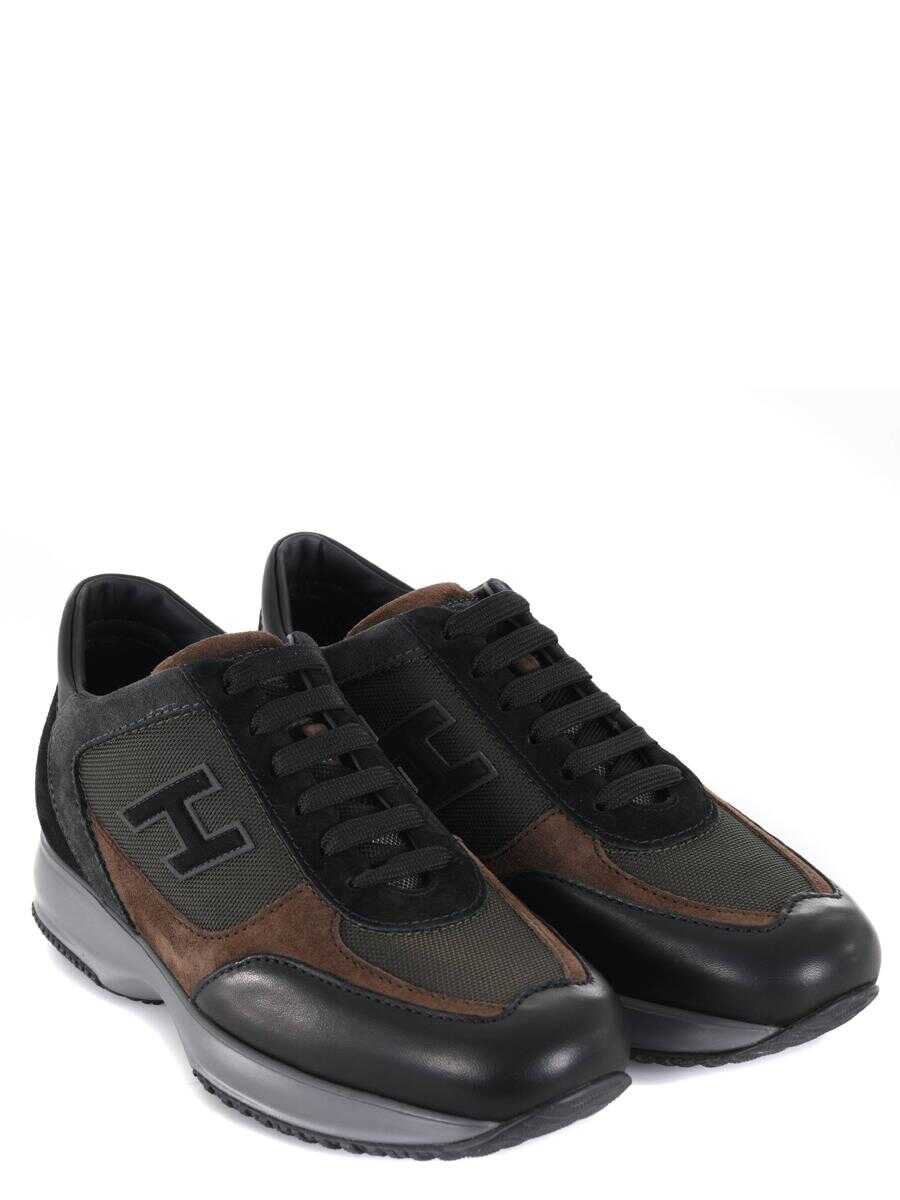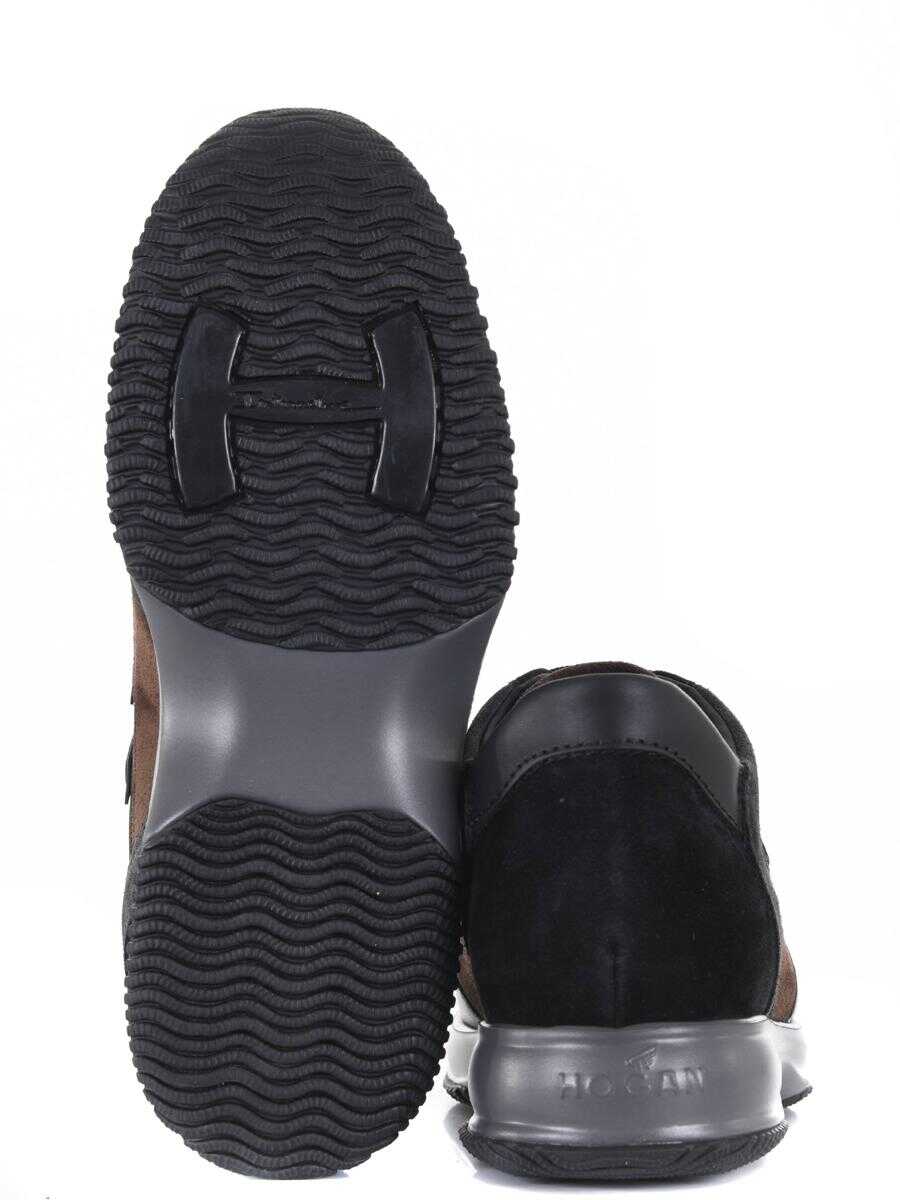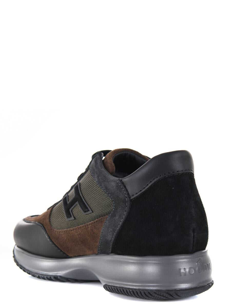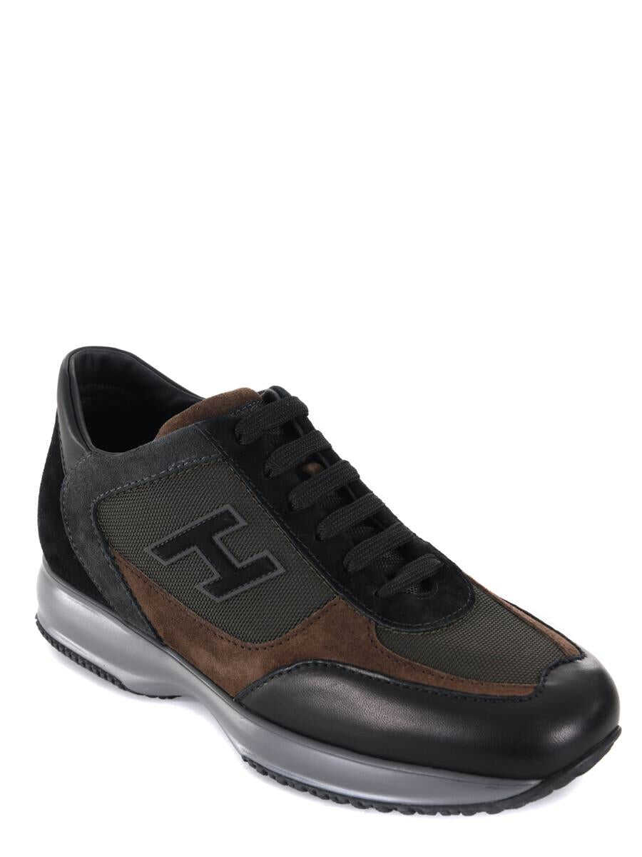 Hogan sneakers in Black/Brown leather and nylon. Gray suede inserts. Lace up. Logo on the tongue. "H" logo applied on the side. Rubber sole with tone-on-tone "Hogan" lettering on the back. Made in Italy
