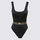 Black Greca swimsuit from Versace featuring signature Greca detailing, scoop neck, sleeveless, spaghetti straps, open back and stretch-design.