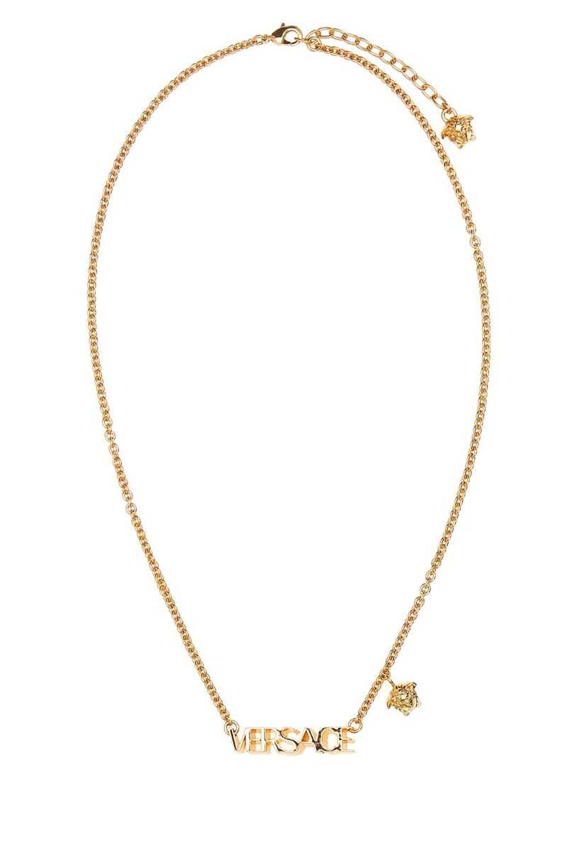 Gold-tone logo-plaque necklace from VERSACE featuring logo plaque, Medusa Head motif, cable-link chain and lobster claw fastening.