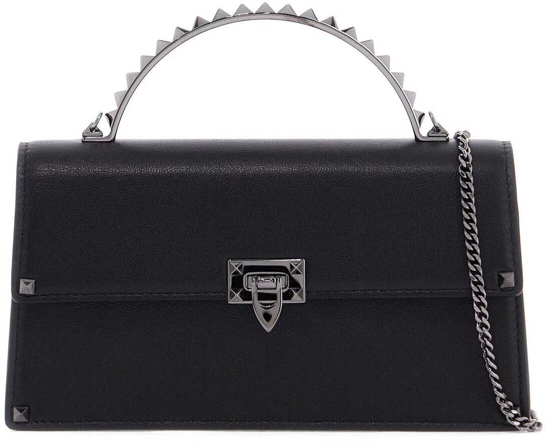 The mini Rockstud bag by Valentino Garavani is made of smooth leather and has a structured shape, with small ruthenium-finished studs. It features a hook closure, an interior with three credit card slots, and a rigid handle profiled with studs. Complete with a removable chain shoulder strap for a crossbody look.