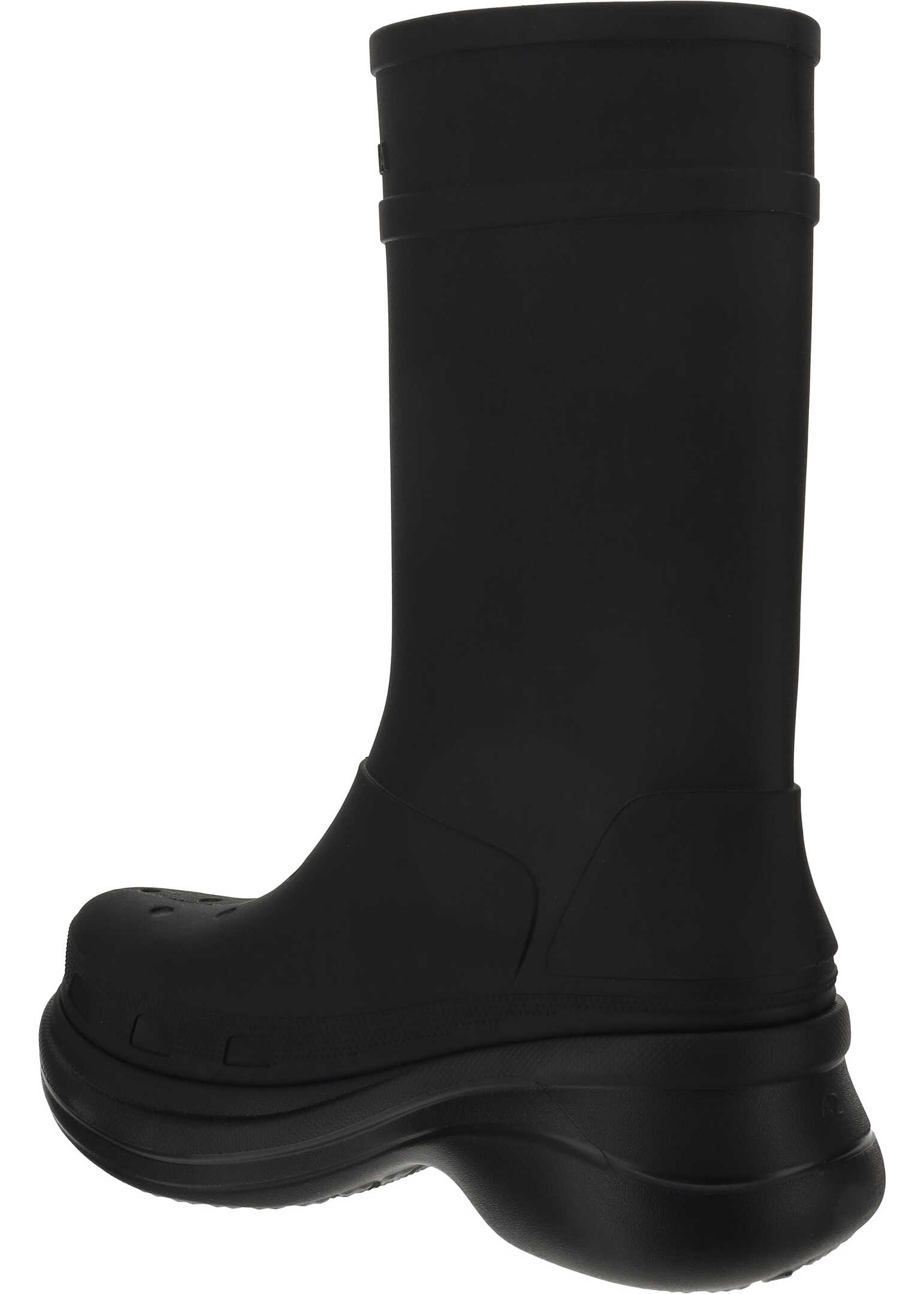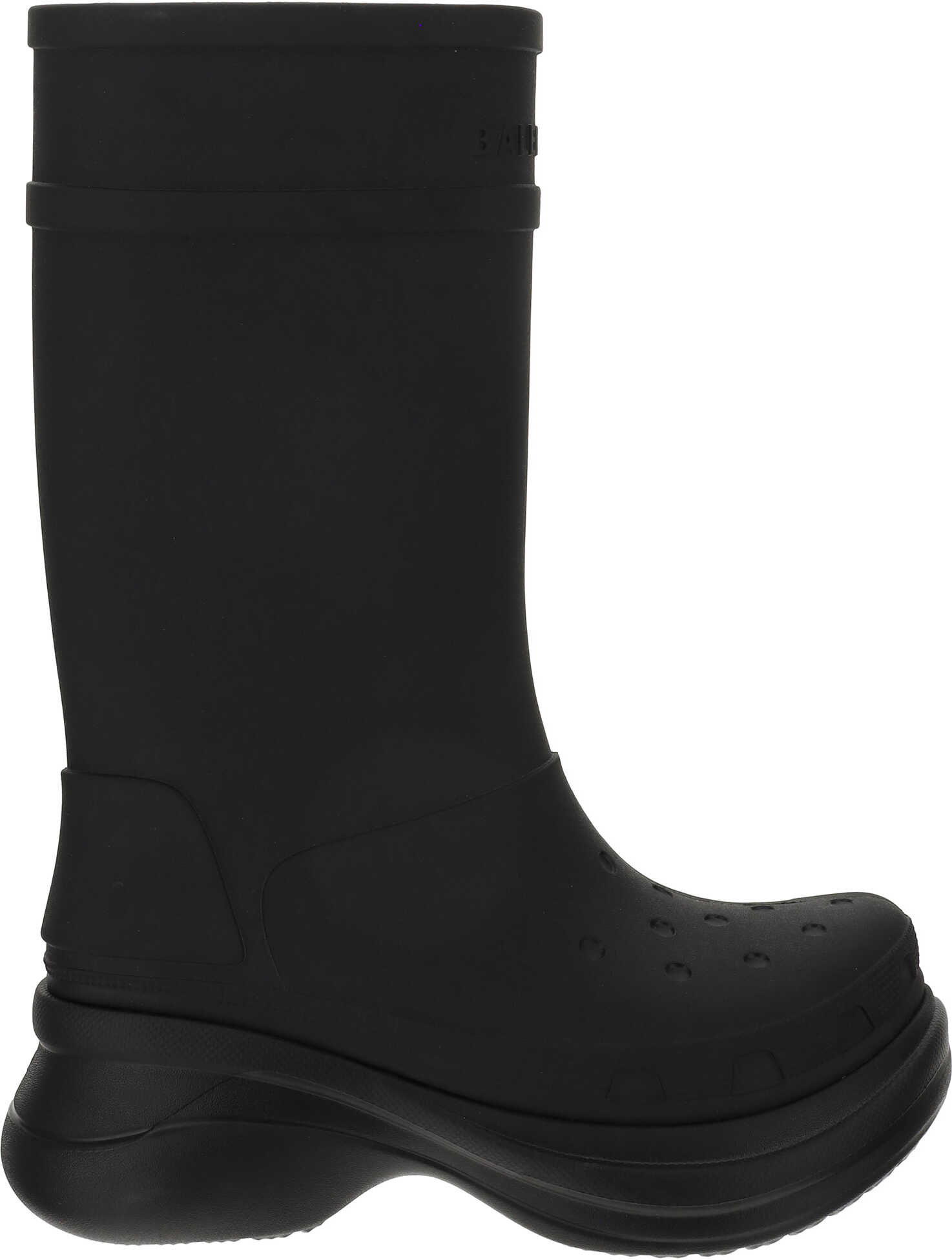 Boots by Balenciaga, slip-on style, textured high sole, round toe with hole detail on front.