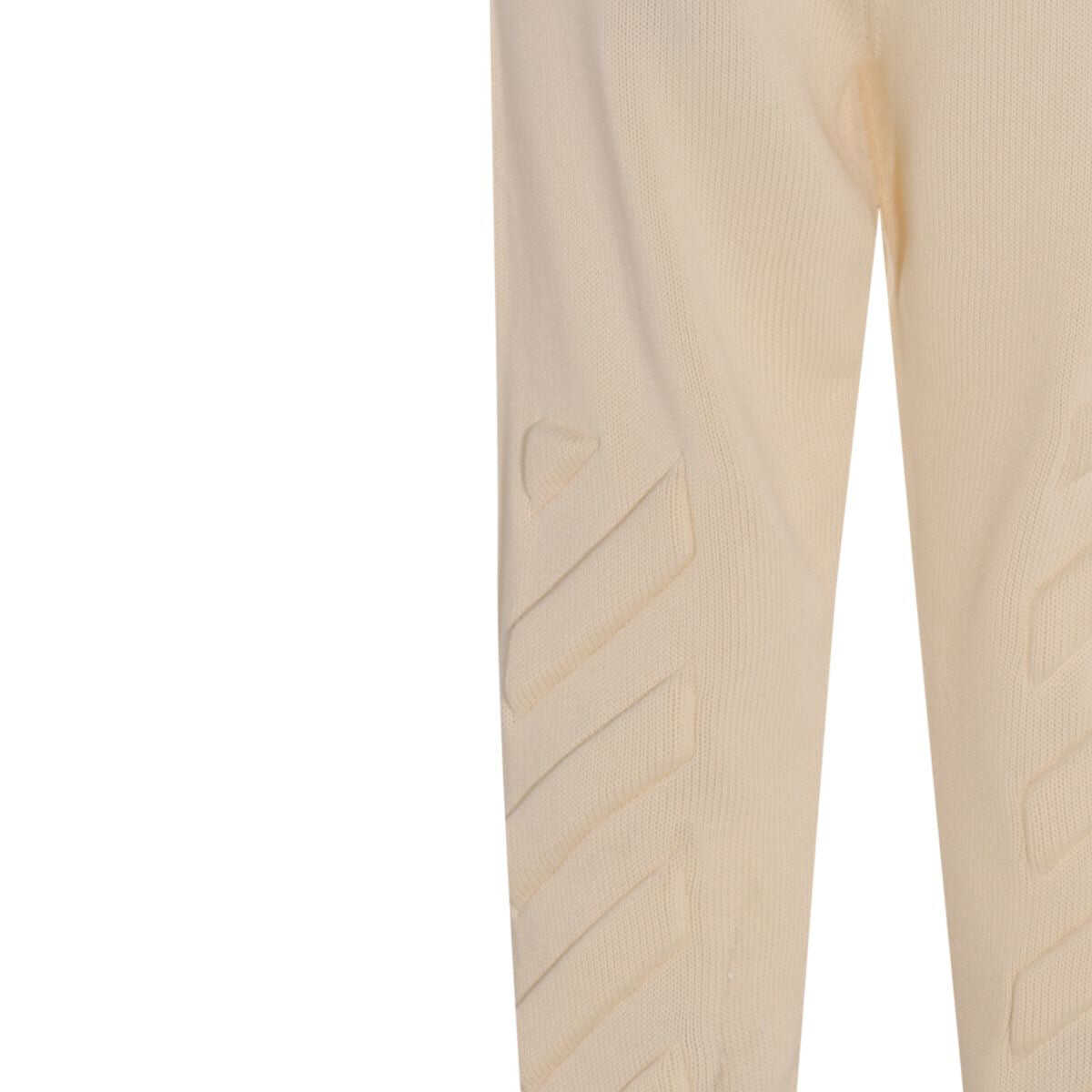 Diag-stripe knitted track pants from OFF-WHITE featuring light beige, cotton, knitted construction, signature Diag-stripe print, ribbed drawstring waistband, two side inset pockets, rear patch pocket, straight leg and ribbed ankles.