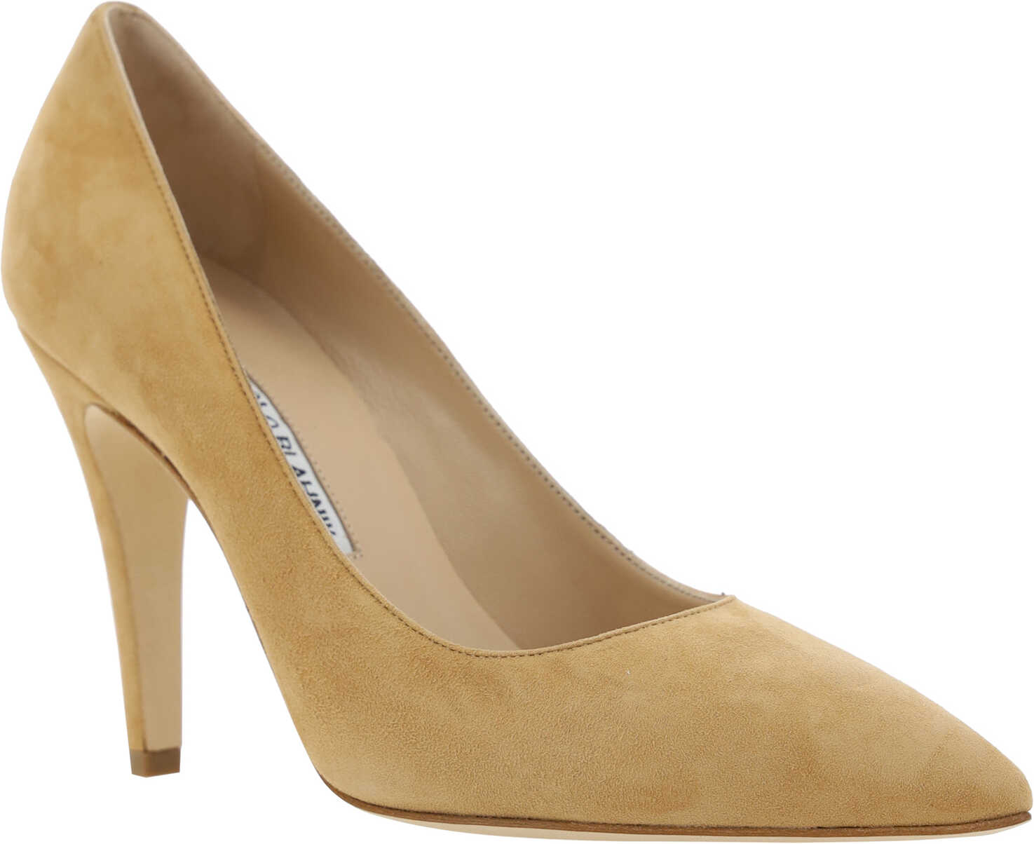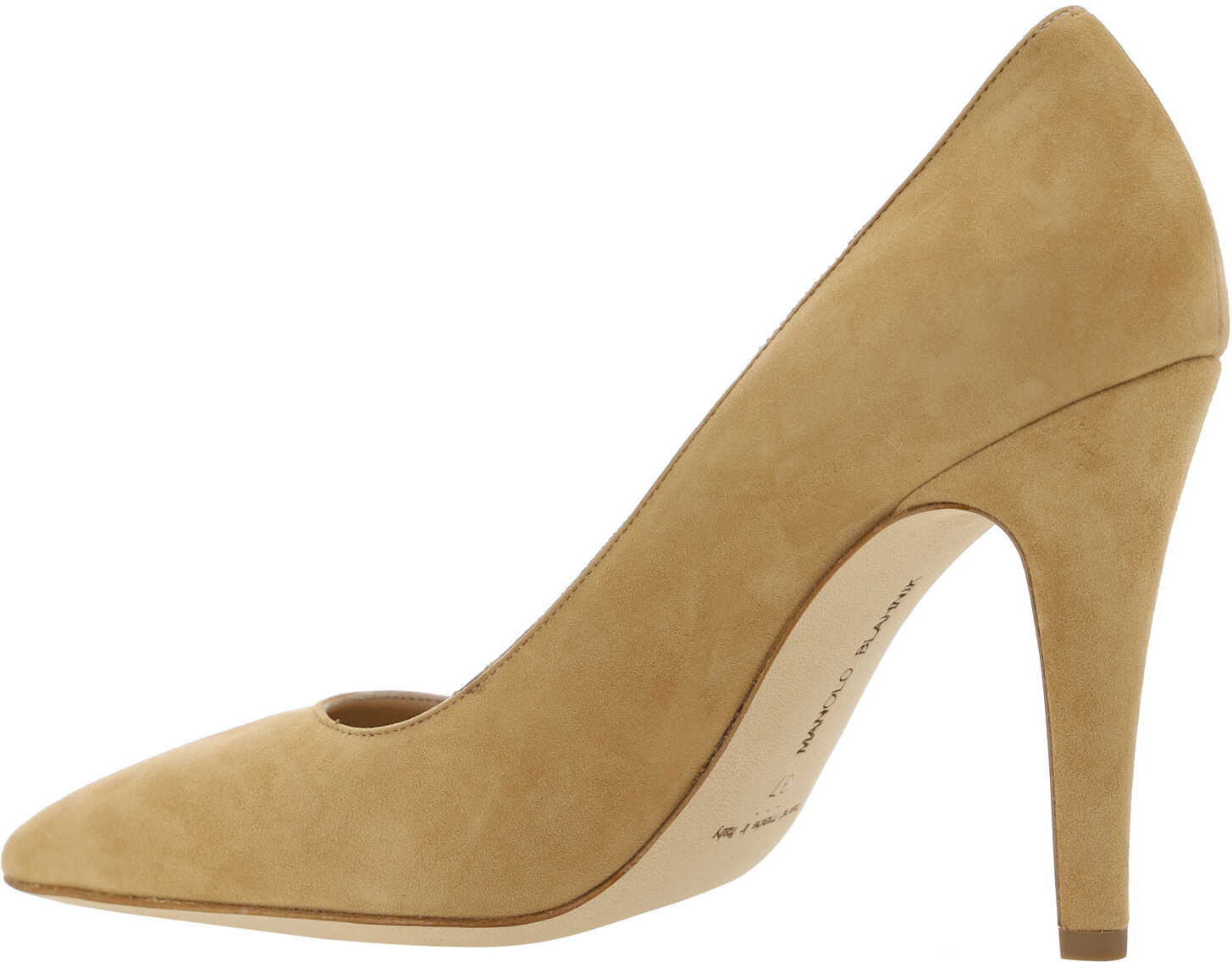 Goatskin Nelirapla Pumps by Manolo Blahnik featuring an almond toe, all-over suede design, leather stiletto heel, logo-embossed insole.
