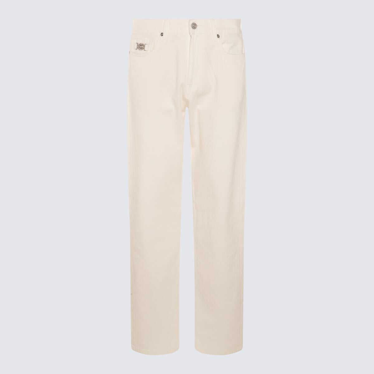 White cotton denim jeans from Versace featuring frontal zip and button fastening, belt loops, regular vestibility and pockets.