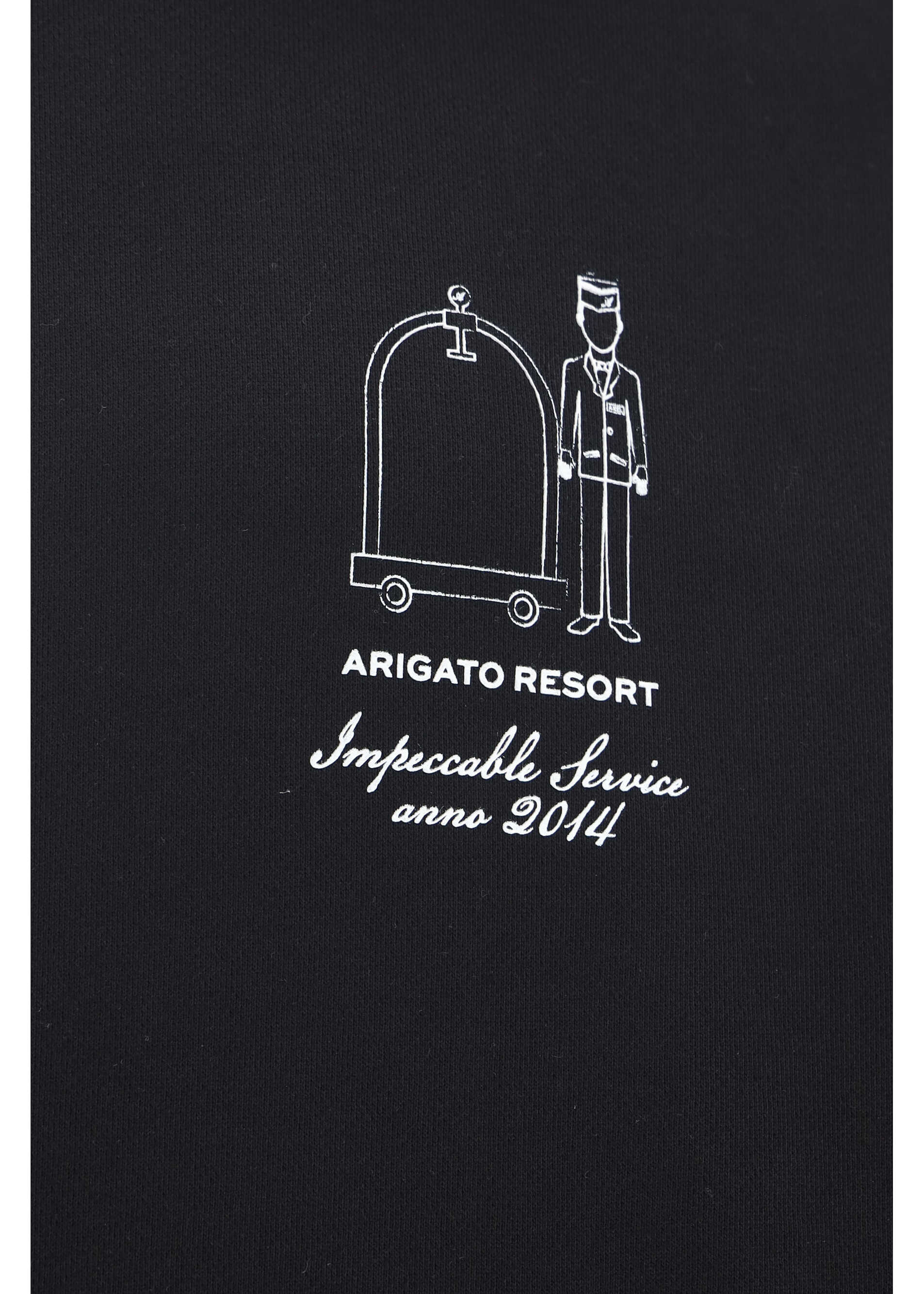 Cotton Resort Hoodie by Axel Arigato, features ribbed cuffs, ribbed hem, front kangaroo pocket, iconic brand monogram printed in contrast on front, plush interior, regular fit.