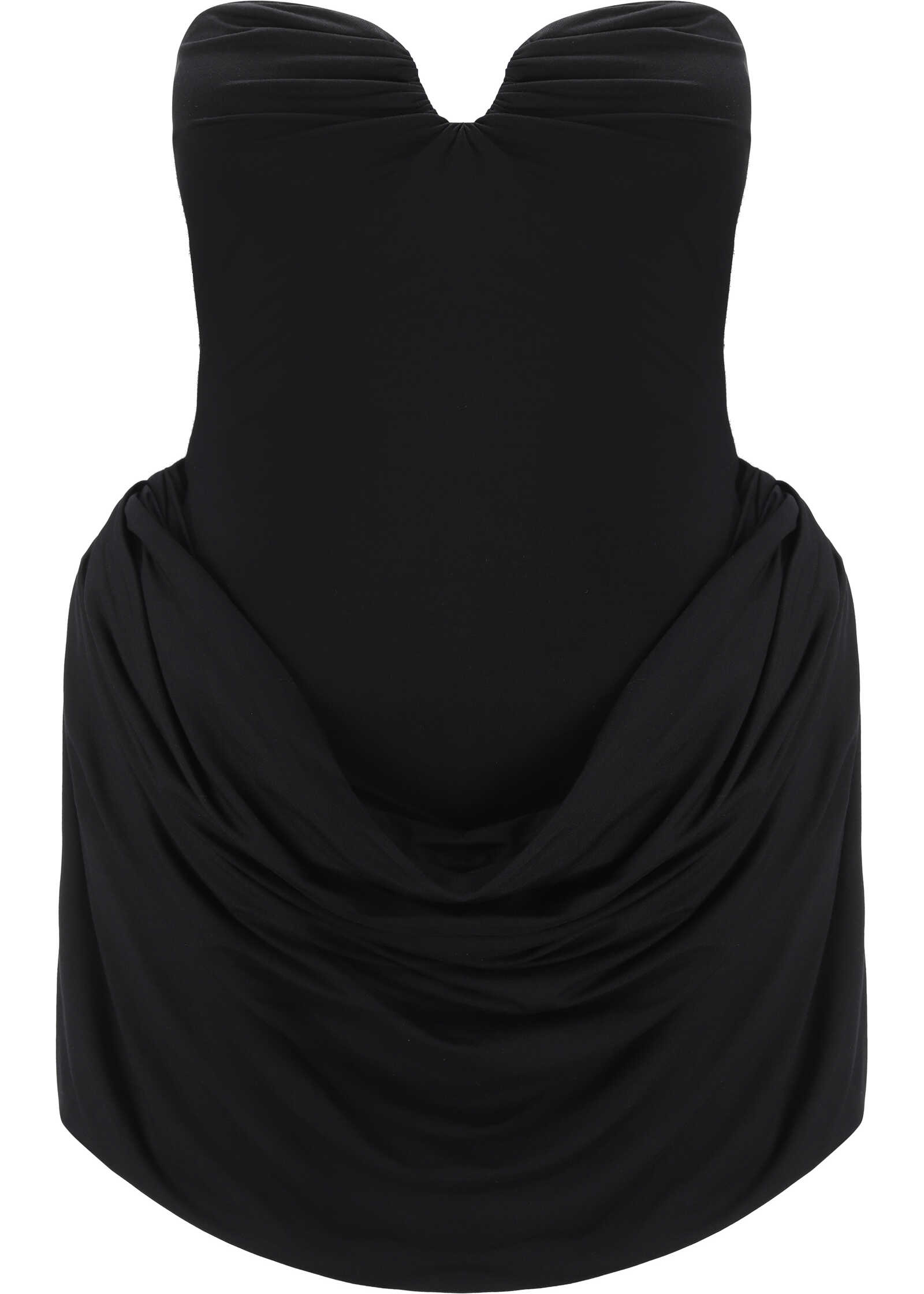 Mini Dress by Magda Butrym, off-shoulder pattern, ruched ruffle effect details on side panels, soft drape detail on front and back, body closure by snap buttons on bottom, monochrome pattern, regular fit.