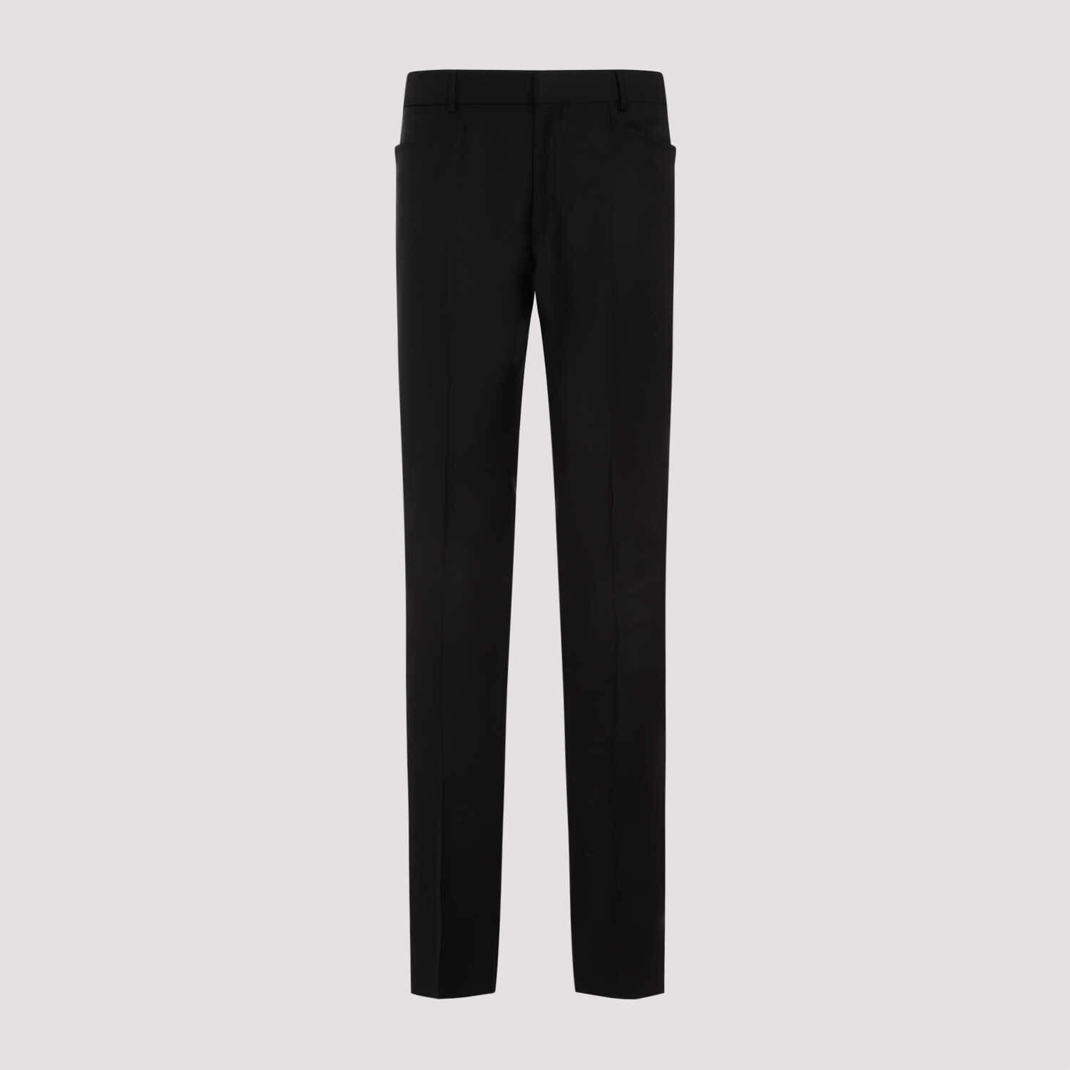 Step up your style game with these sleek black wool pants from TOM FORD. Expertly crafted from a luxurious blend of virgin wool and mohair, these pants feature a modern straight leg fit and versatile design. Perfect for any occasion, these pants will elevate your wardrobe with sophistication and class. Add a touch of luxury to your look with TOM FORD.