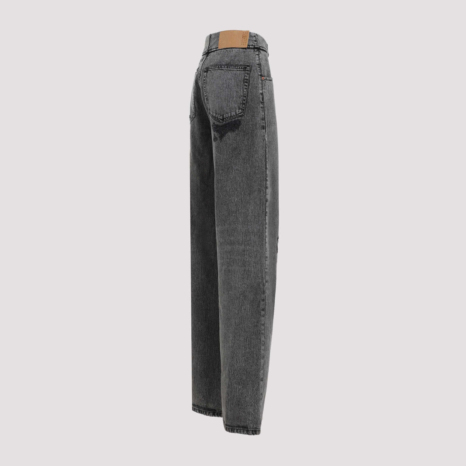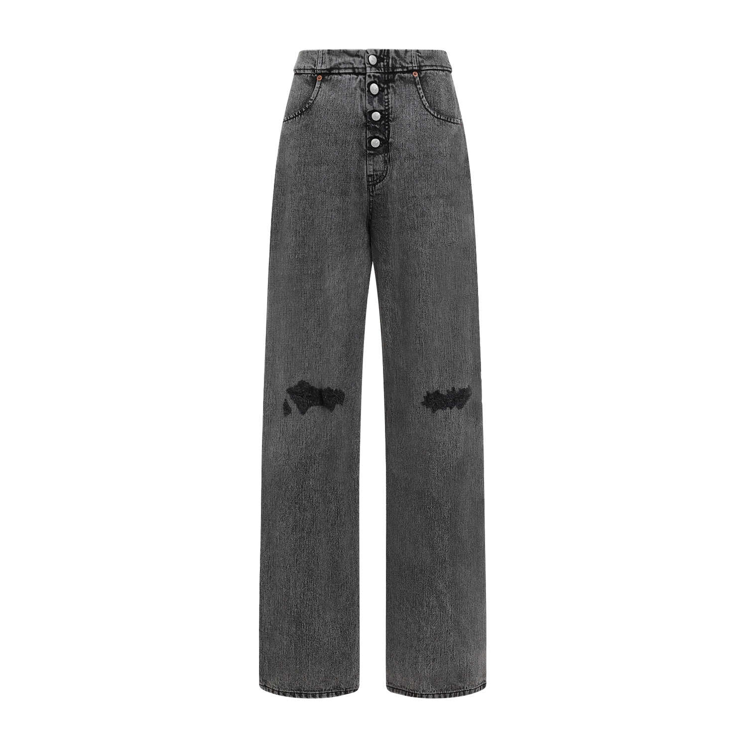 Elevate your style with these MM6 Maison Margiela black cotton jeans. Featuring a classic black color, front buttoned fastening, side and back pockets, wide leg silhouette, and a straight hem with an overused effect. Made from 100% cotton for ultimate comfort and quality. Perfect for adding a touch of edgy sophistication to your wardrobe. Order now and stand out from the crowd!