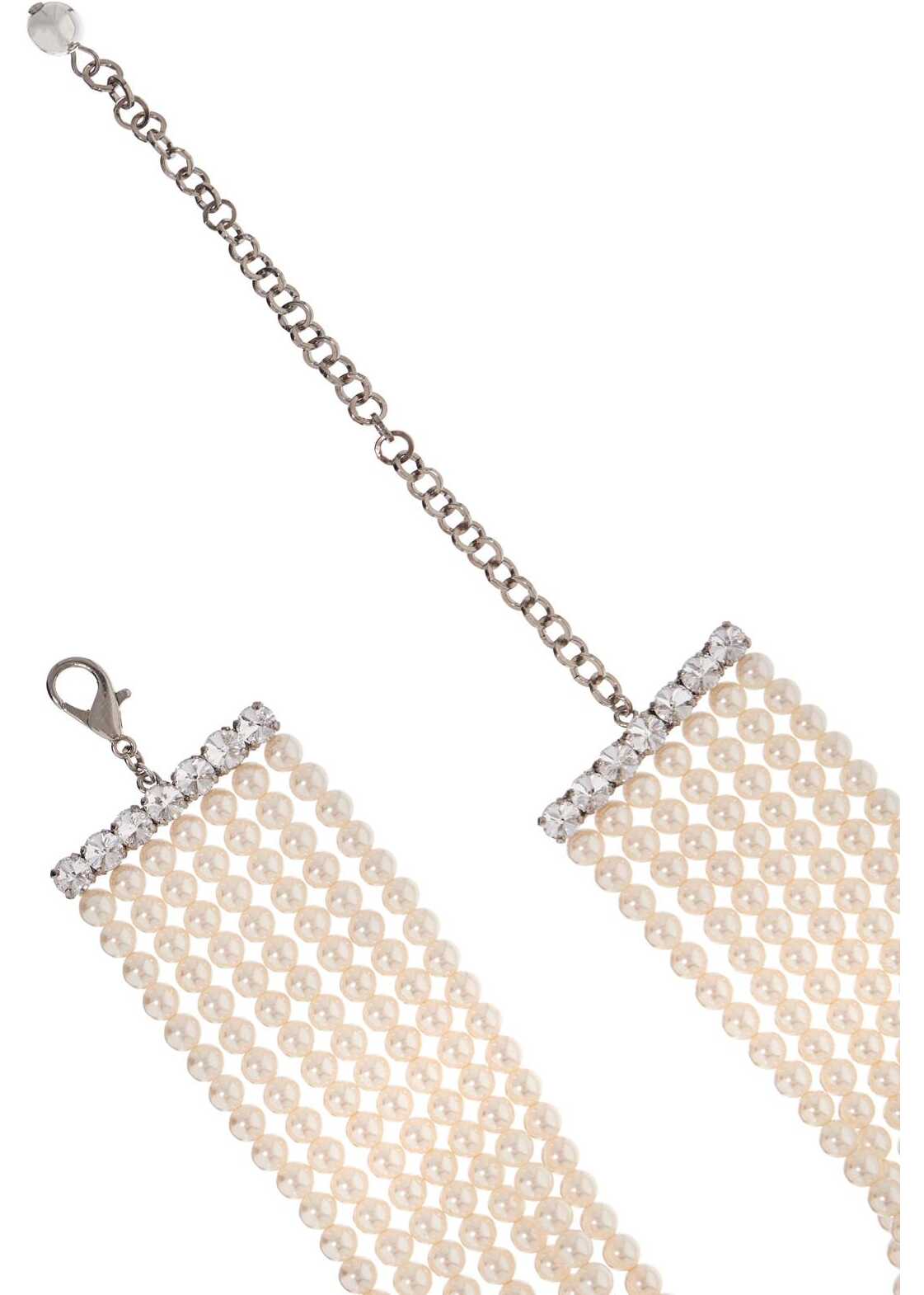 The Alessandra Rich necklace is adorned with multiple rows of pearls and a large crystal cross. The adjustable clasp ensures a perfect fit.