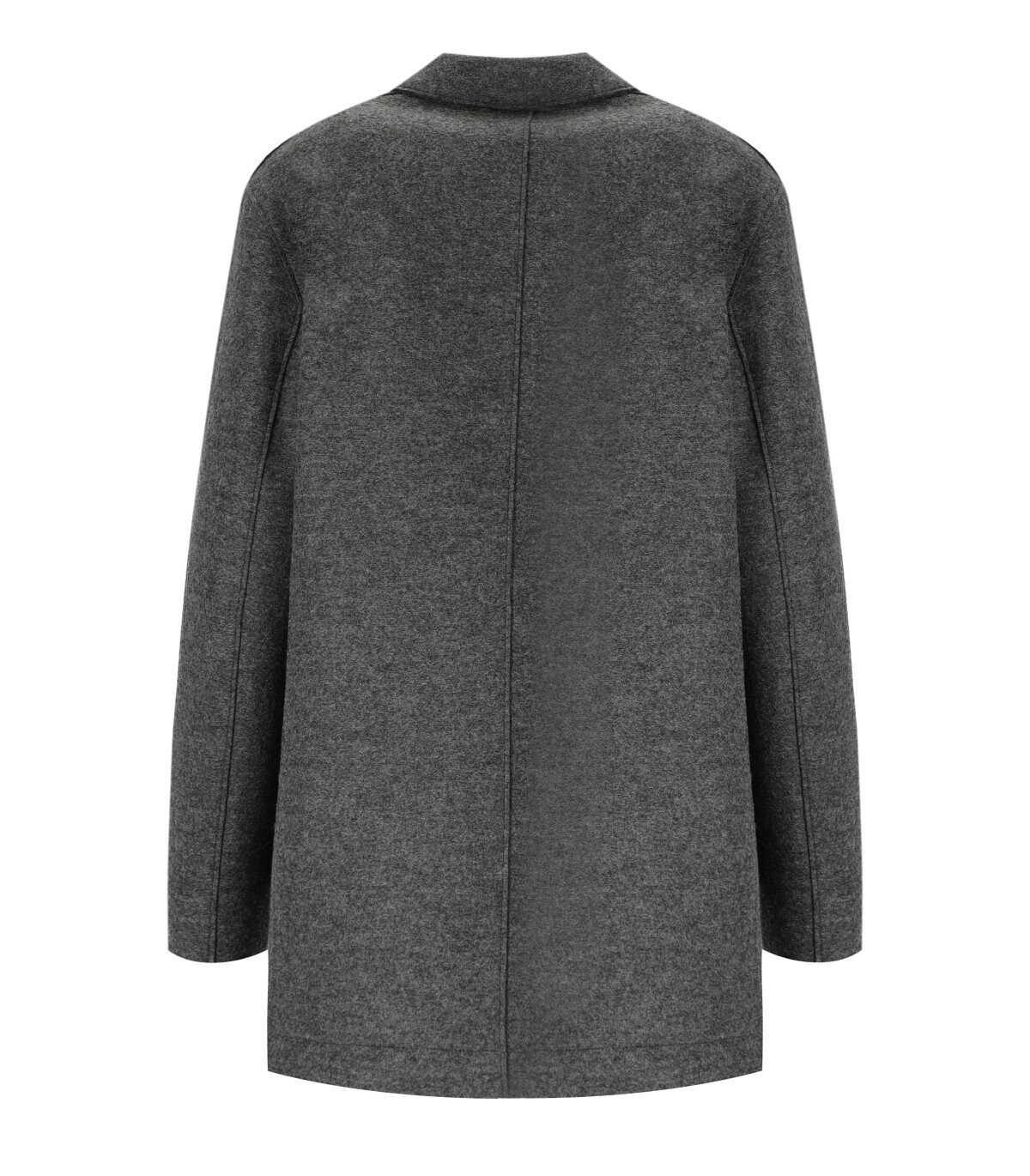 Harris Wharf London coat made of pure virgin wool in a dark gray color. The oversized double-breasted model features long soft sleeves, side seam pockets, and a classic collar shape. The front is elegantly finished with six golden buttons to allow for a complete closure. The finish of the coat is raw.