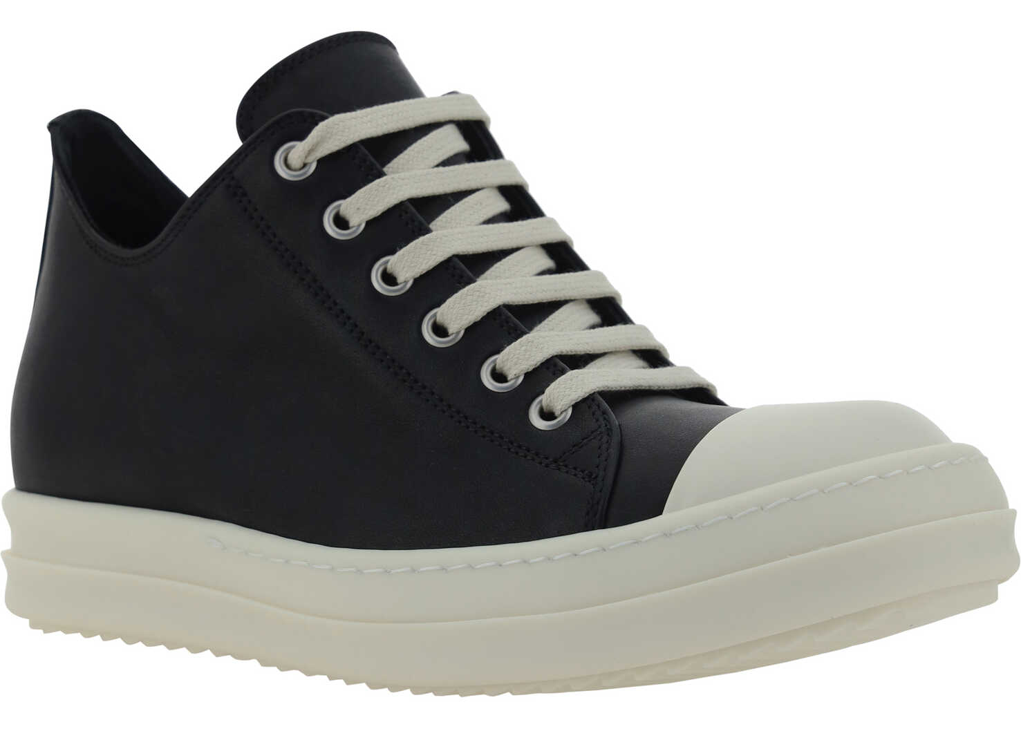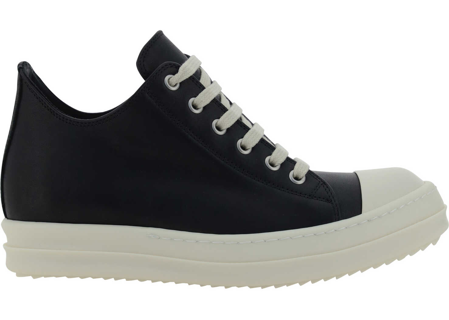 Leather Low Sneakers by Rick Owens, ankle-length model, contrasting reinforced flat toe sole, lace-up front closure.