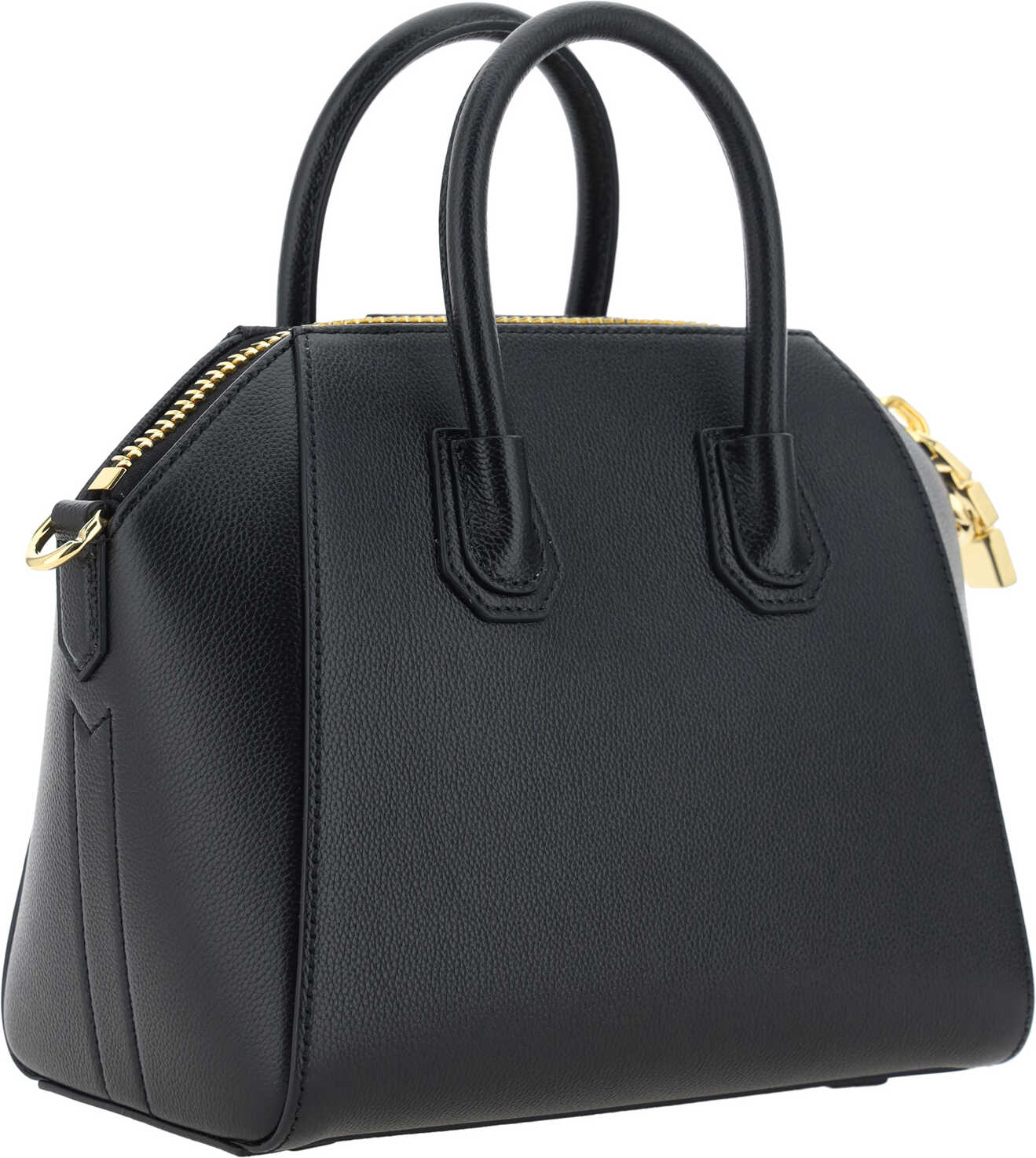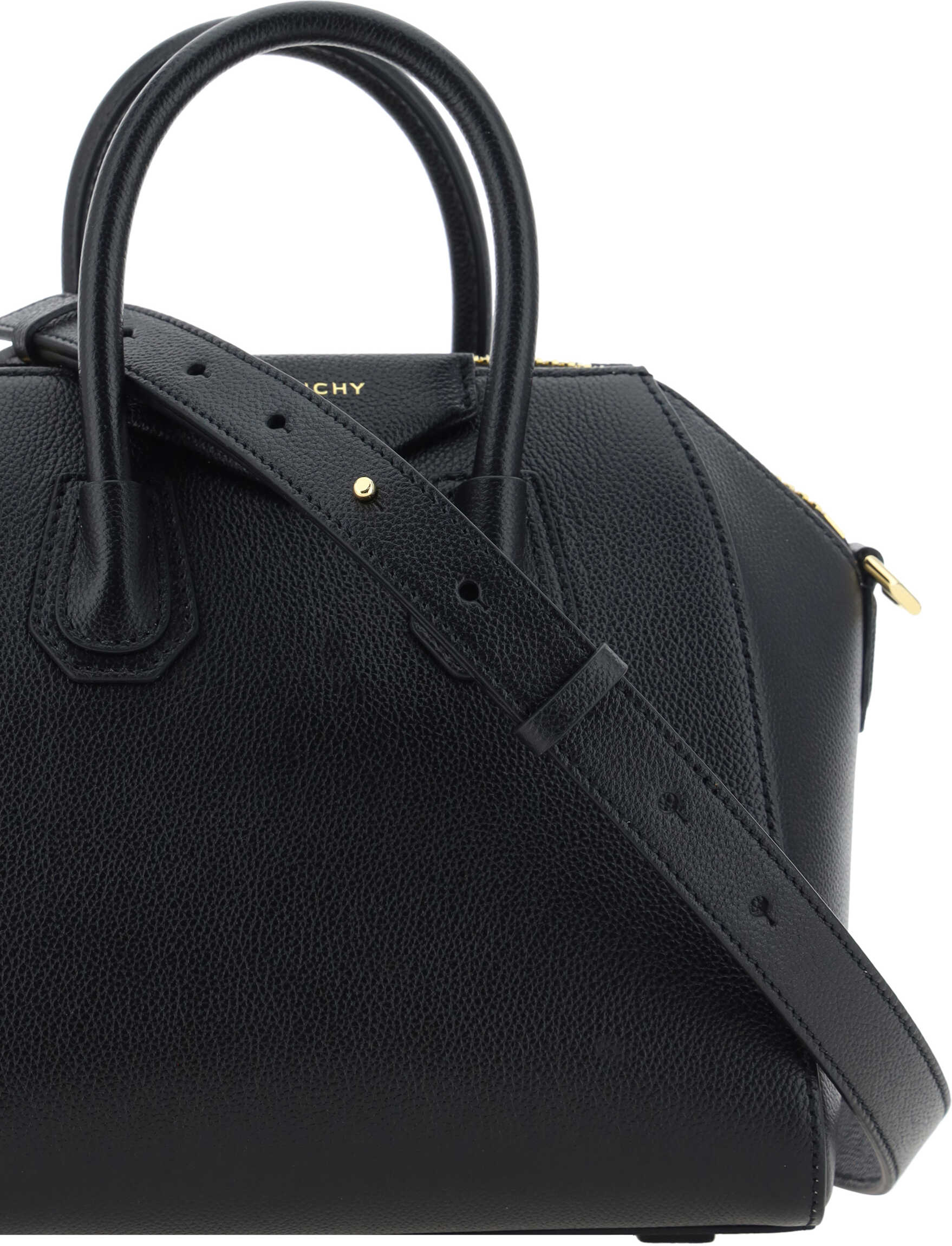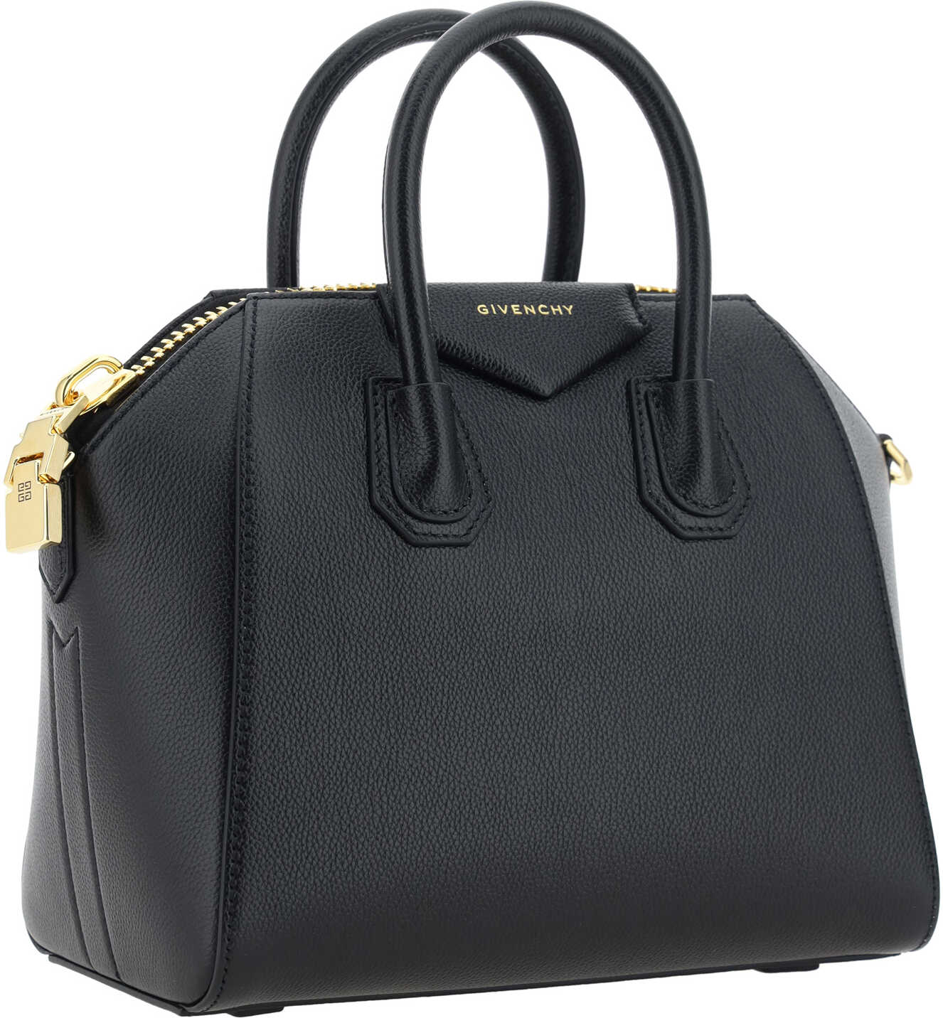 Calfskin Antigona Hand Bag by Givenchy, grained leather design, geometric pattern, two rigid top handles, top closure by zipper with double slider, contrasting iconic brand monogram on front, adjustable and removable shoulder strap, attached support feet at base of bag.