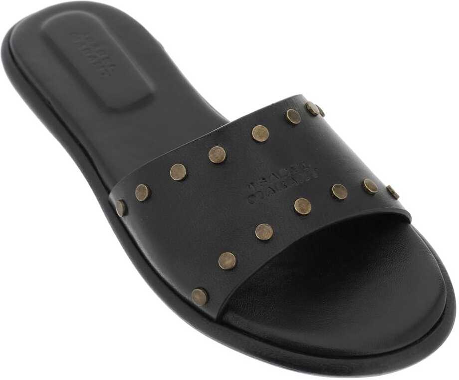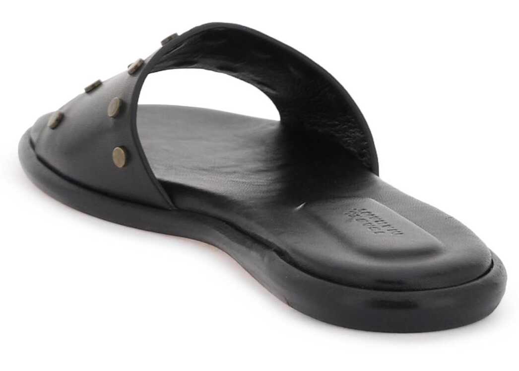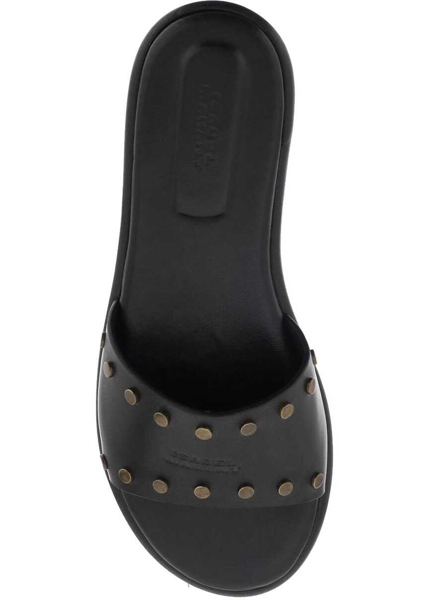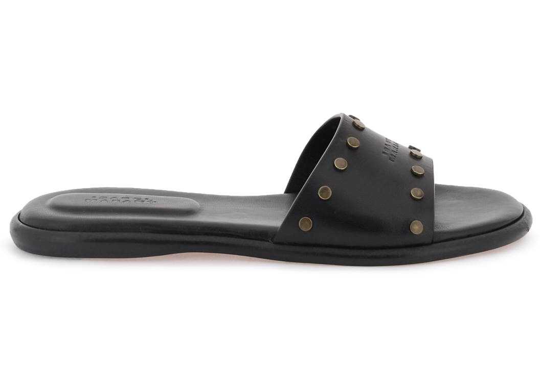 Vikee slides by Isabel Marant featuring smooth leather band decorated with antiqued metal studs and embossed logo. Padded leather insole, leather sole.
