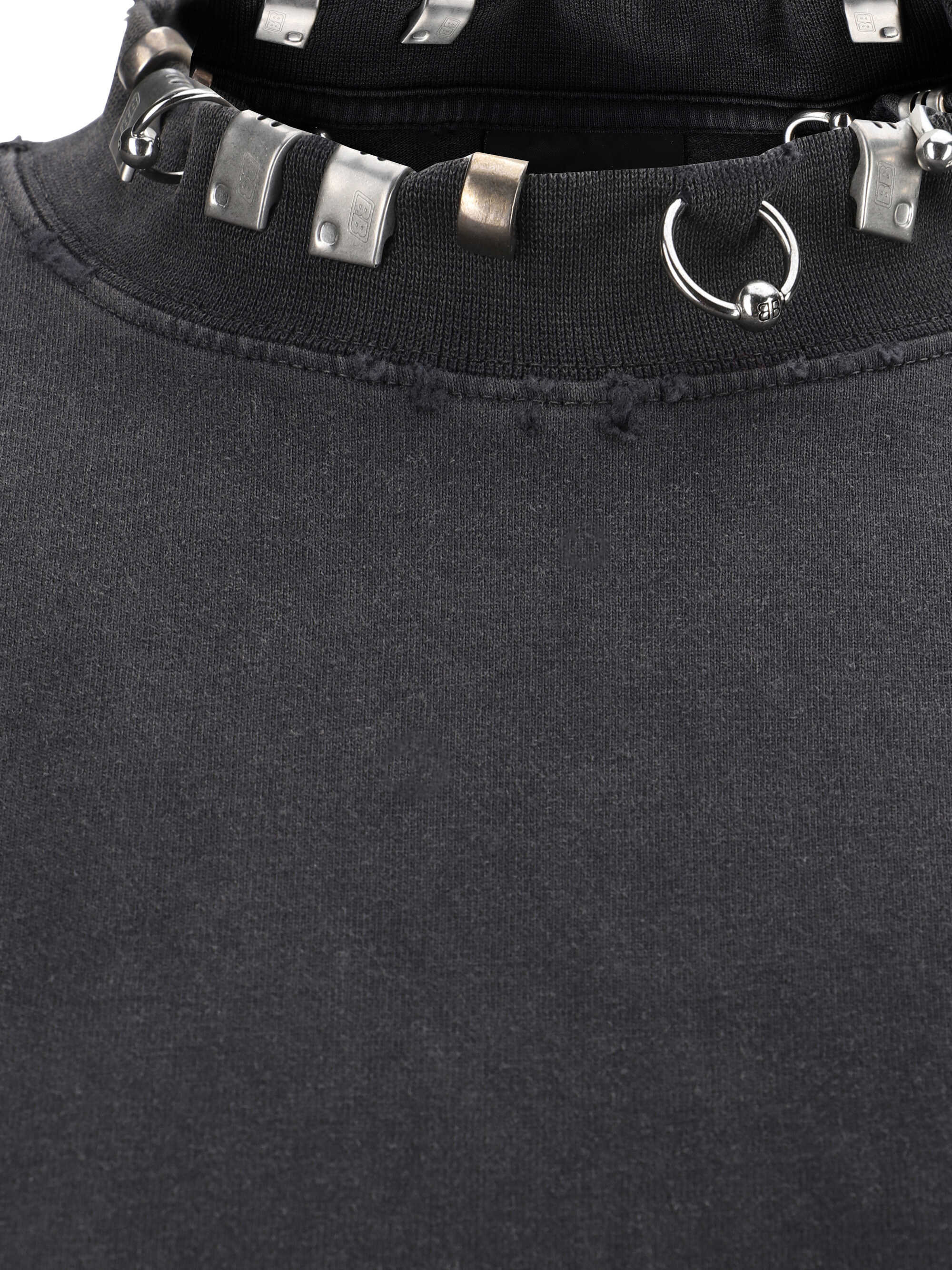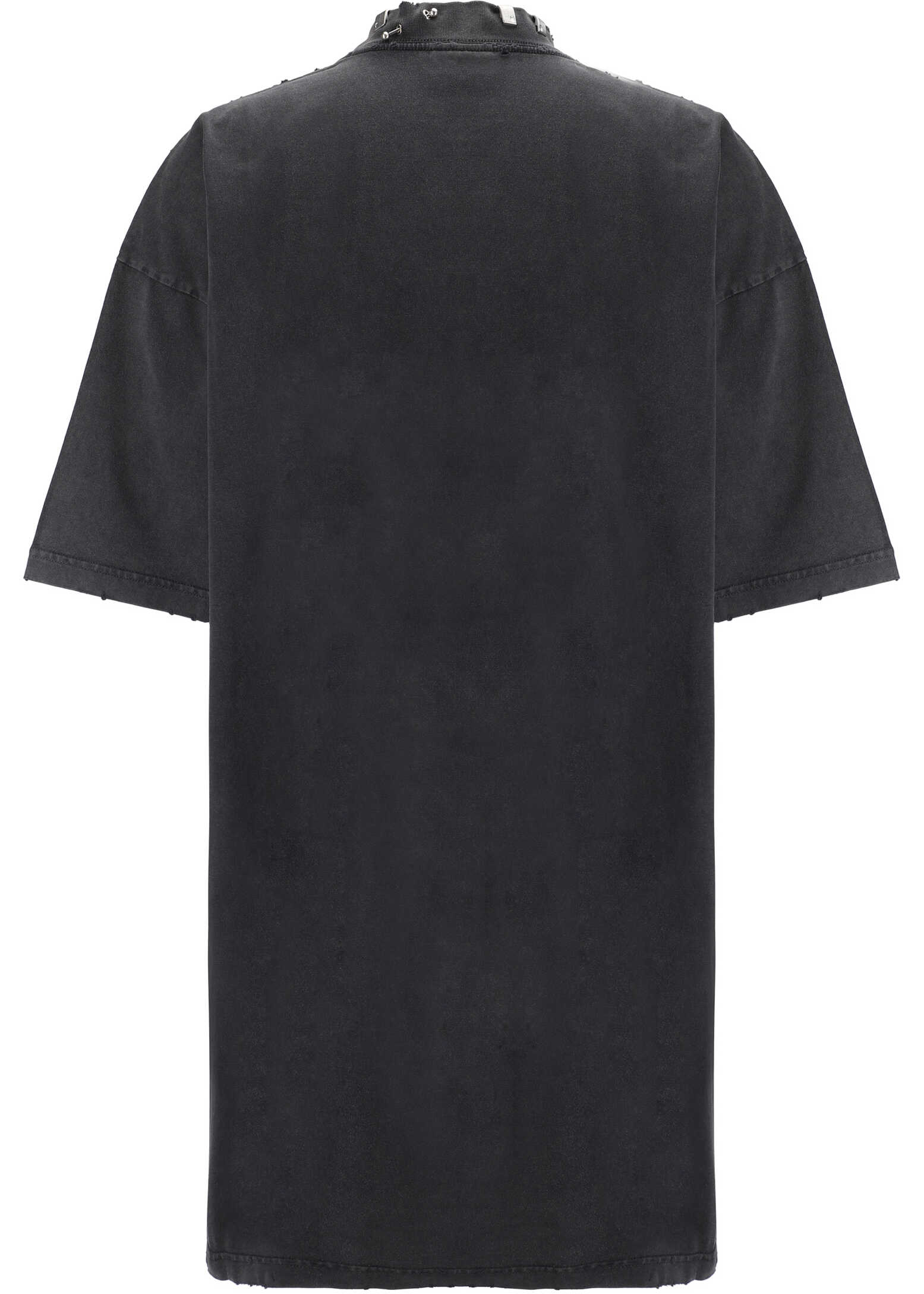 Cotton T-Shirt Dress by Balenciaga featuring vintage worn-effect design, metallic applique detailing at neckline, monochrome pattern, regular fit.