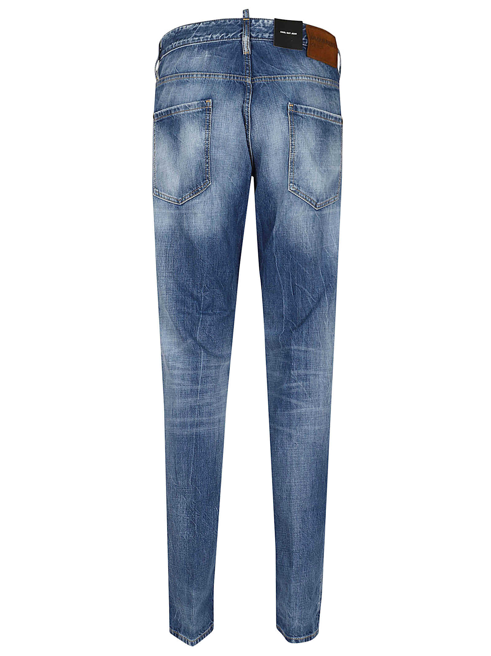 Make a statement with these stylish DSQUARED2 cotton trousers in blue. Featuring a five pocket design, stretch denim fabric, and leather accents, these Italian-made jeans are the perfect choice for fashion-forward men. Elevate your wardrobe with the iconic DSQUARED2 brand today!