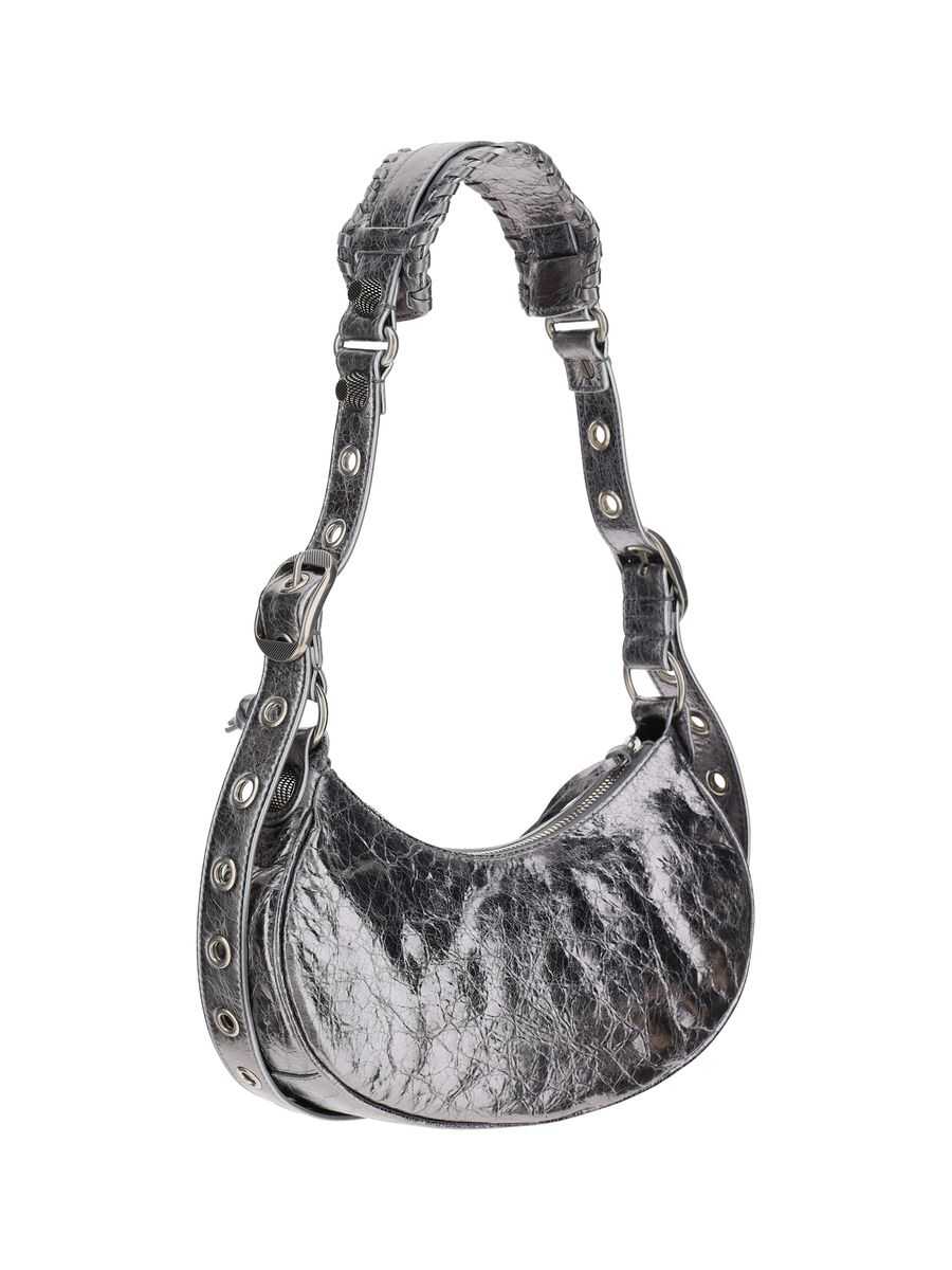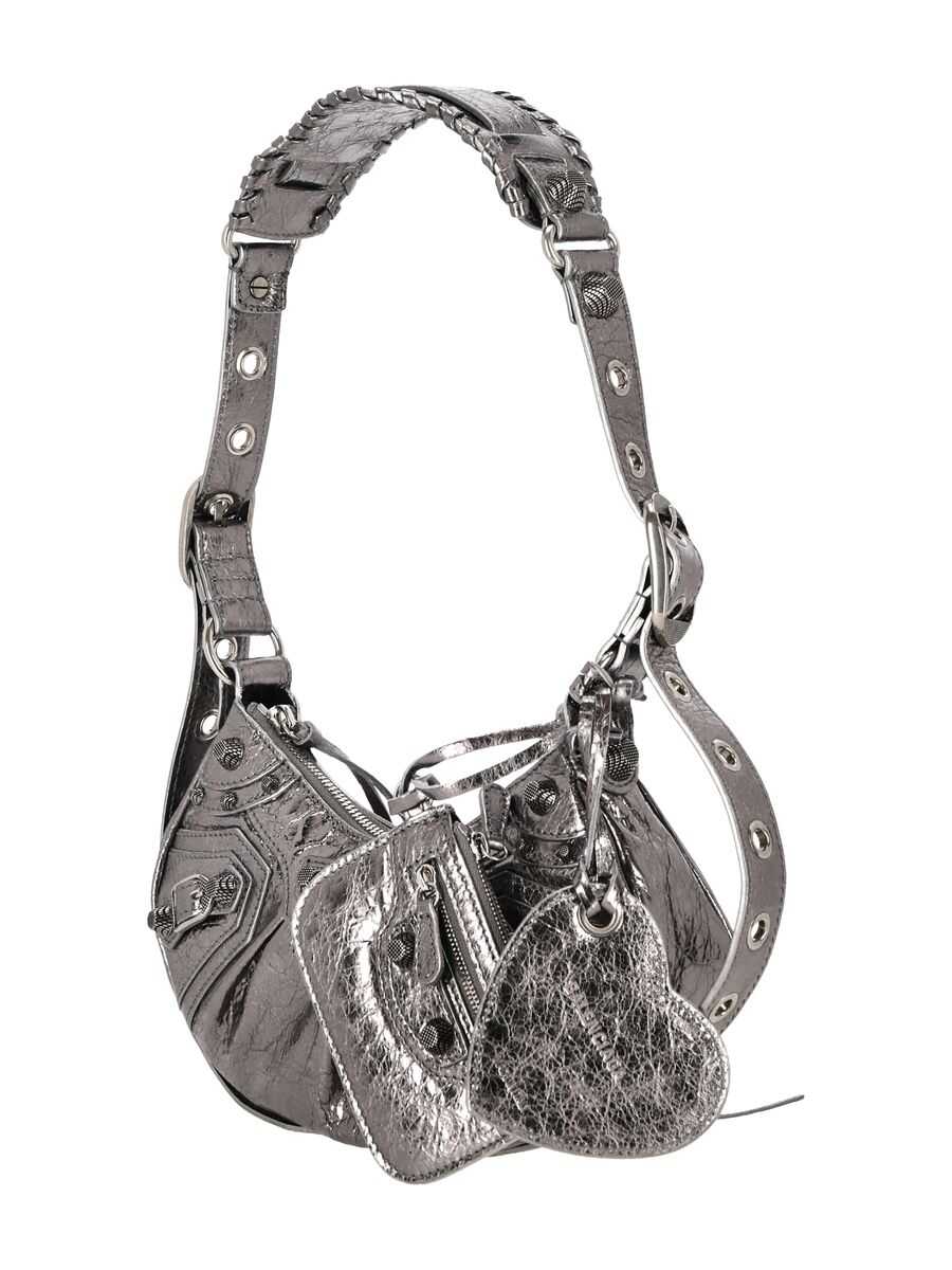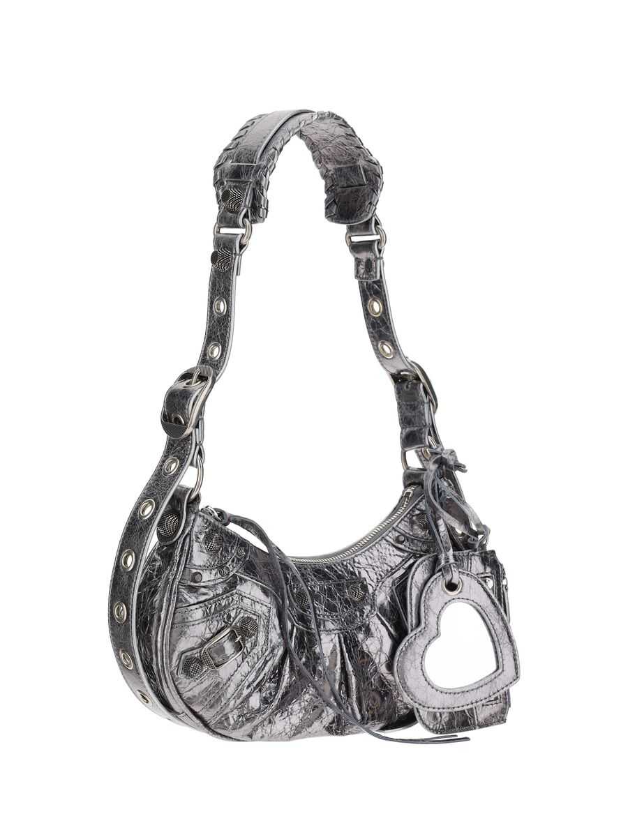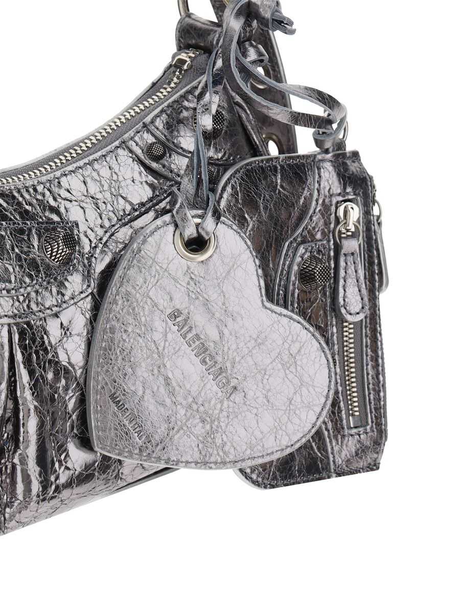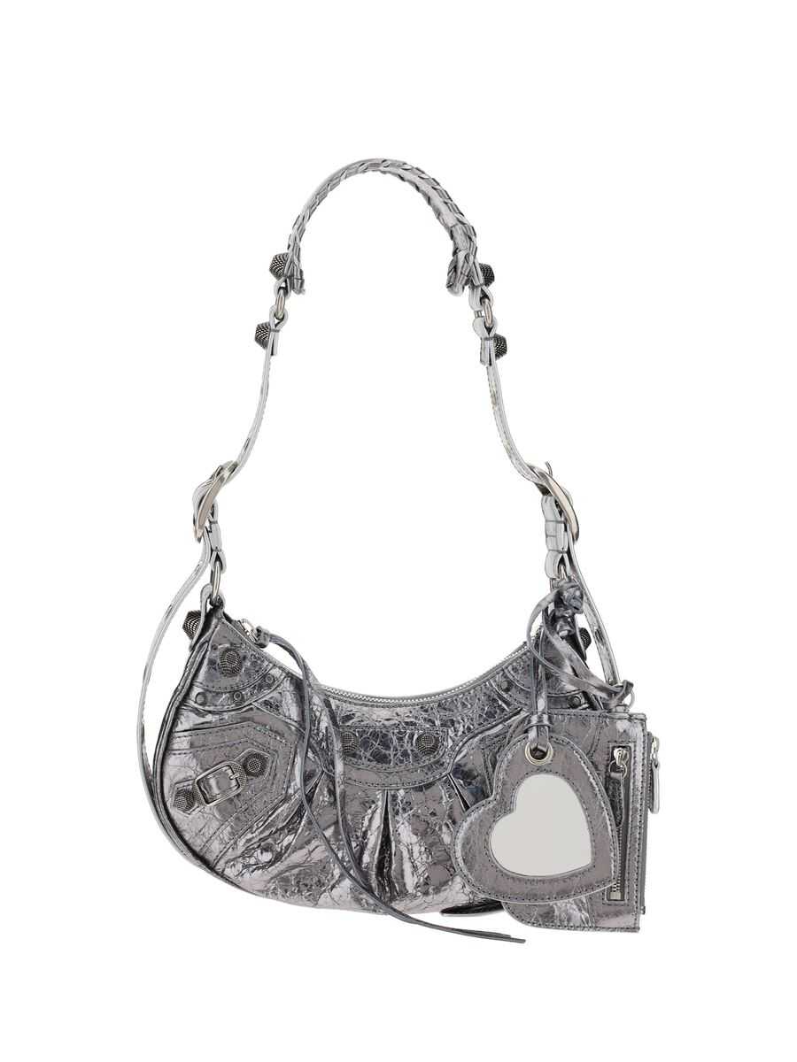 silver-tone calfskin metallic finish silver-tone hardware top zip fastening main compartment decorative buckle detailing adjustable shoulder strap braided shoulder pad removable zipped pouch removable heart mirror This piece comes complete with a protective dust bag.