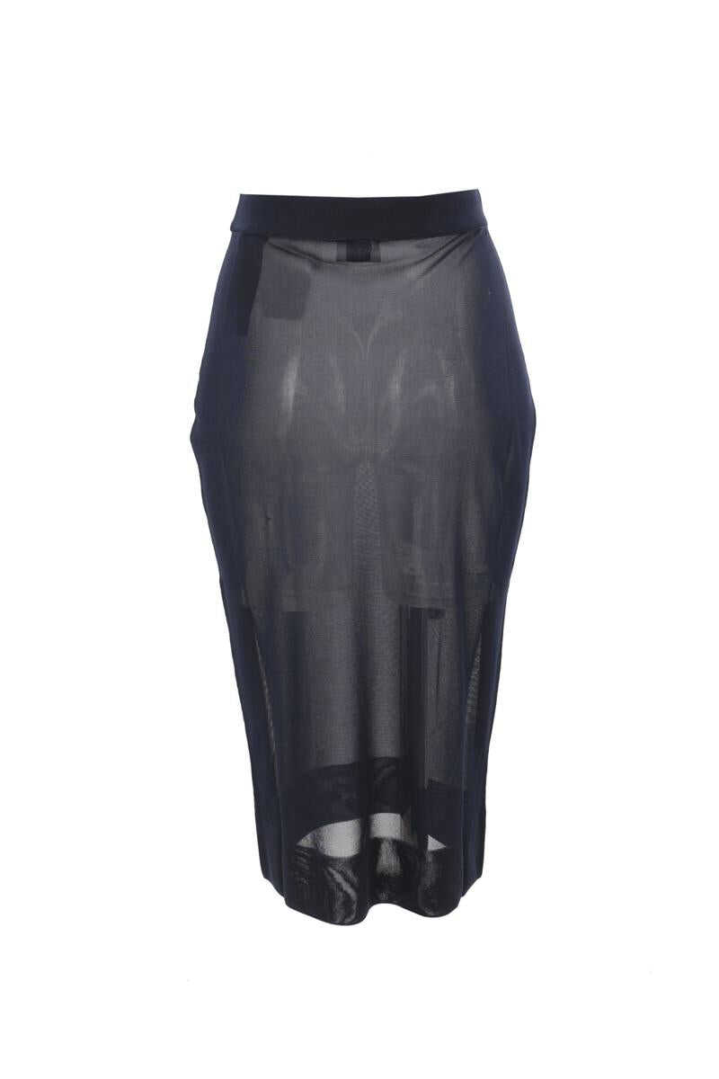 Saint Laurent's pencil skirt crafted in blue viscose sheer-knit. It features elasticated waistband, ribbed edges and straight hem. Unlined interior.