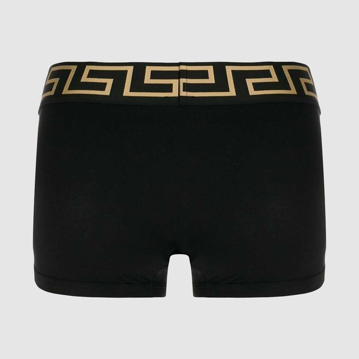black/gold-tone stretch-cotton lightweight jersey elasticated logo waistband Medusa Head motif slip-on style Just a reminder that this piece must be tried on over your own garments.