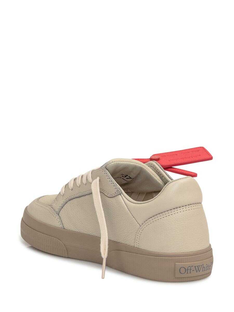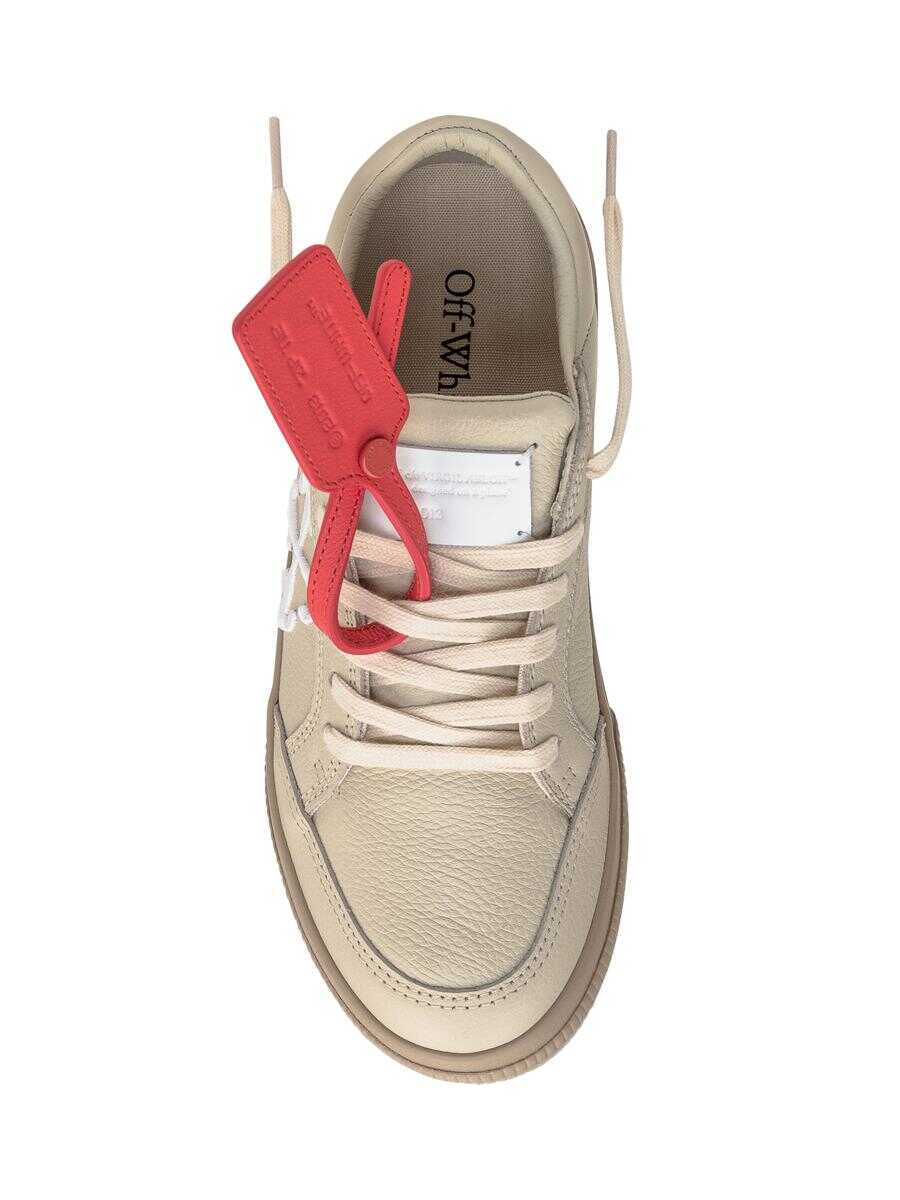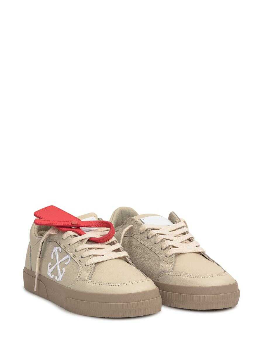 Beige leather sneaker. Lace-up closure. Tongue with logo label. Arrow logo embroidered on side. Logo lettering on back. Leather Zip-Tie label at front.