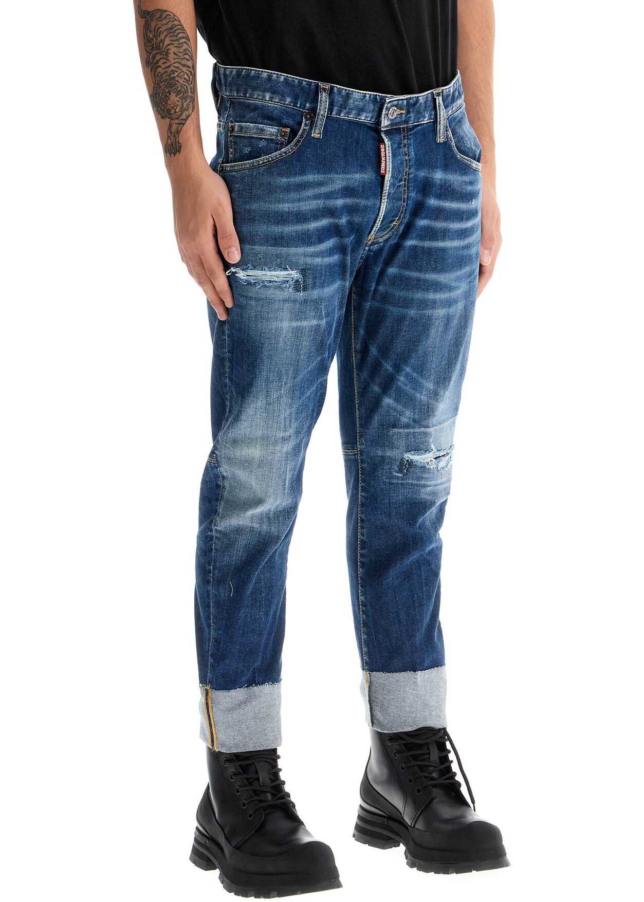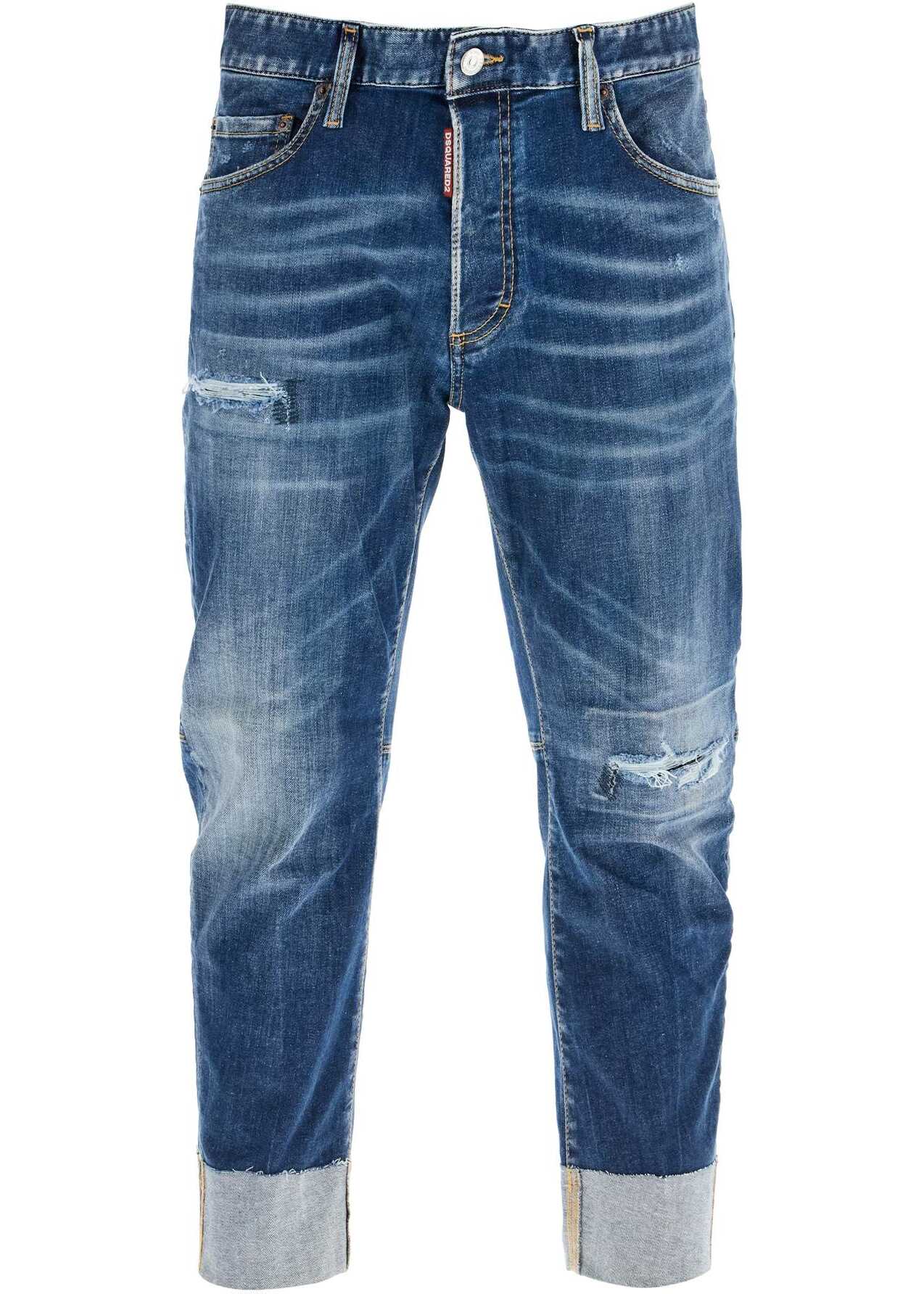 These Dsquared2 Sailor Jeans are made of stretch cotton denim with a used wash, enhanced by destroyed details. The cropped design features a rolled ankle effect, contrast double needle stitching and a back finished with leather jacron and silver metal logo. Completing the piece is the hidden button closure. Slim fit. The model is 182 cm tall and wears size IT 48.