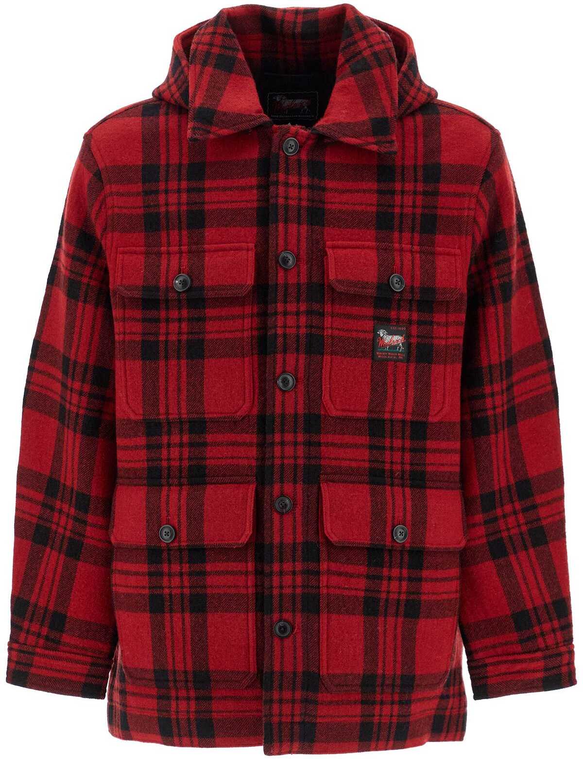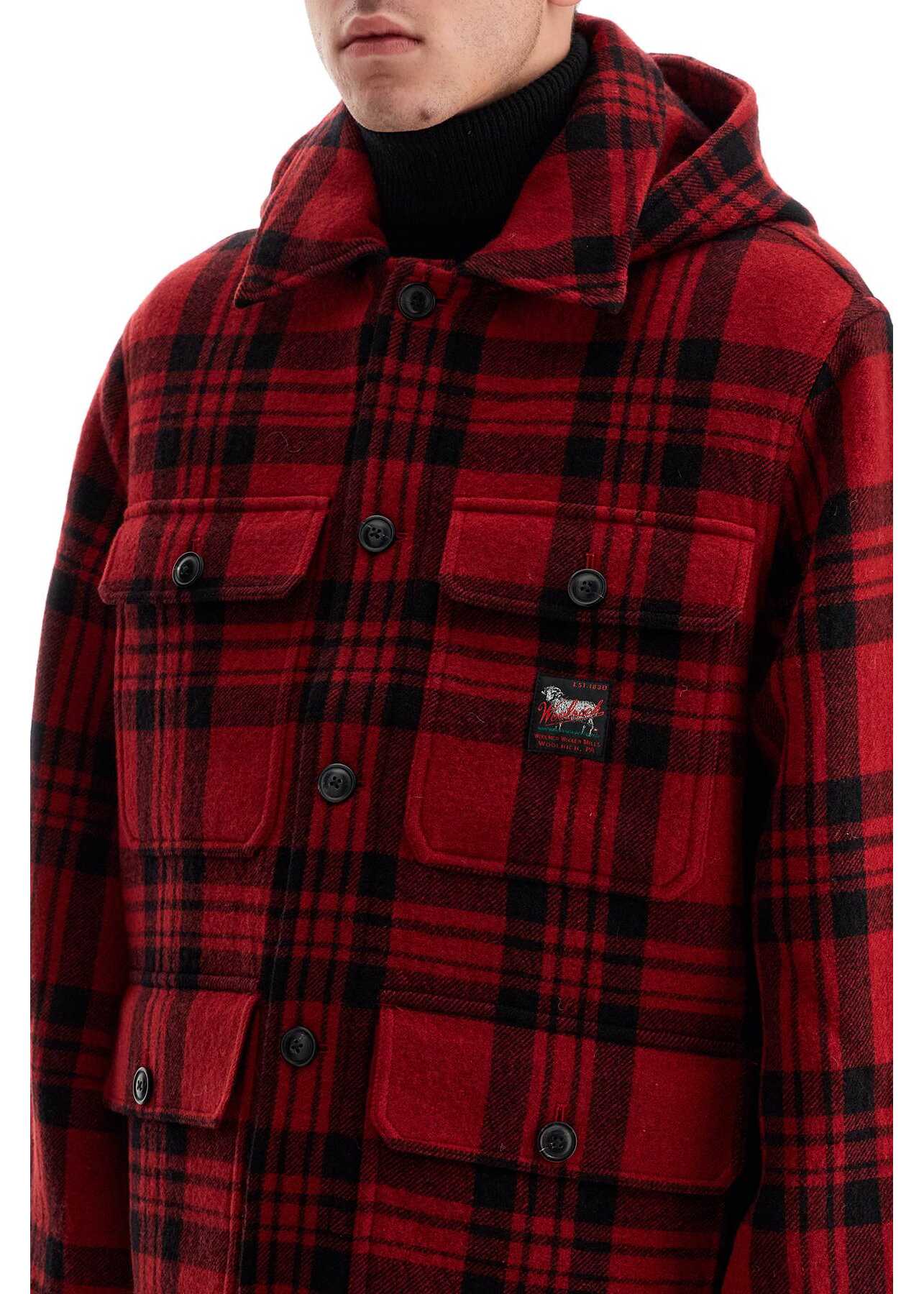 This Woolrich plaid jacket is made of a wool blend and features a shirt collar and detachable hood. It has a straight and comfortable fit with medium length, button closure, four flap pockets on the front and two on the sides. The interior is lined with an additional pocket. The model is 182 cm tall and wears size M.