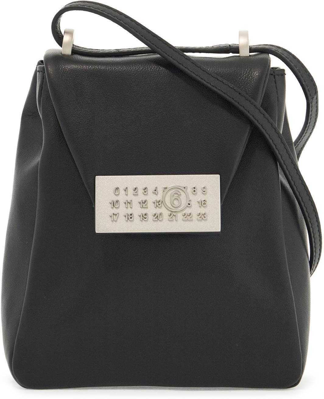 The small shoulder bag by MM6 Maison Margiela is made of leather with a characteristic triangular structure. It features a magnetic closure with a metal numeric signature applied on the flap, a lined interior and a back pocket with iconic white stitches. The adjustable strap allows for a crossbody or shoulder look.