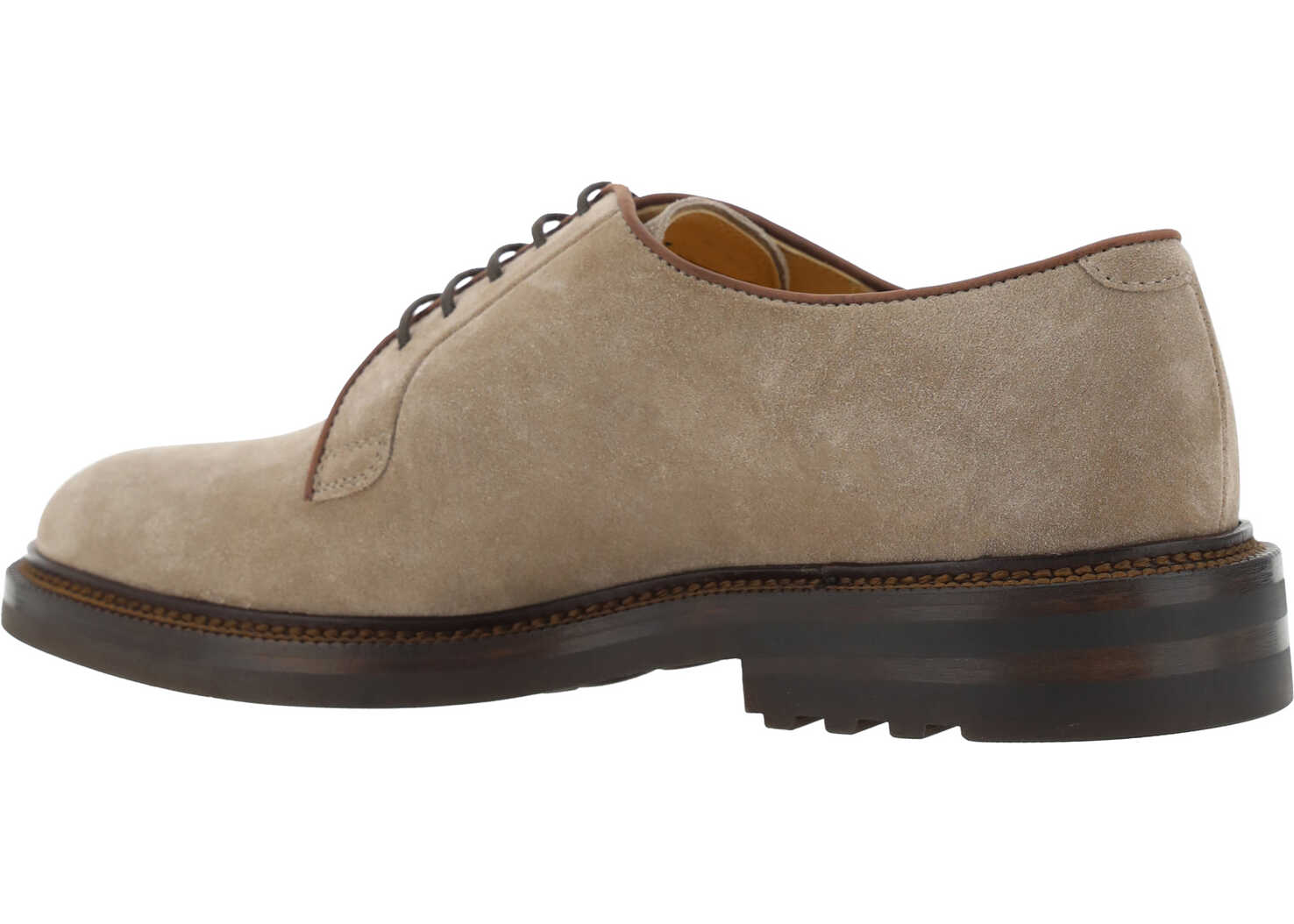 Leather Lace-Up Shoes by Brunello Cucinelli, suede leather design, front lace-up closure, leather block sole, contrasting logo insole.