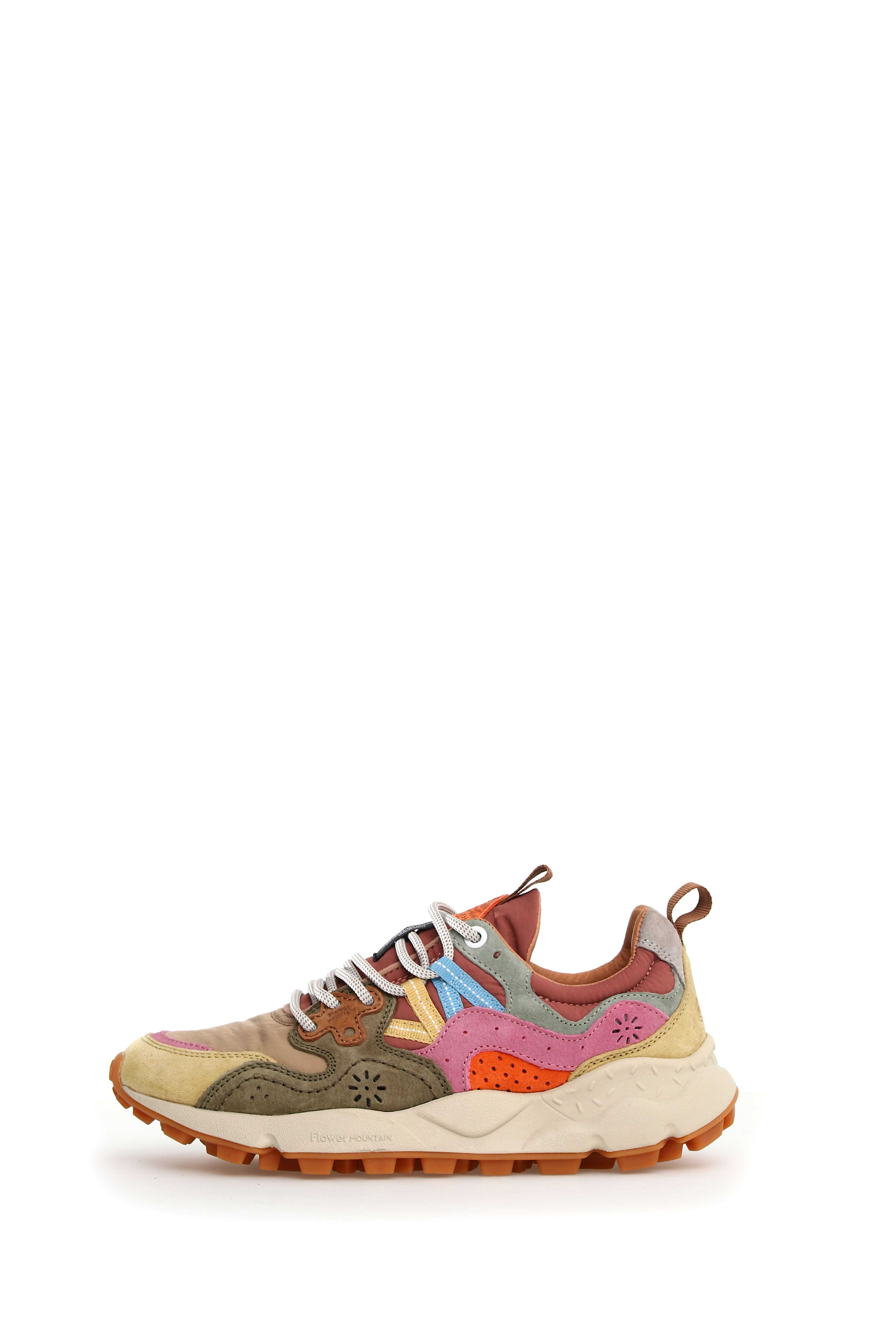 `Flower Mountain sneakers made with suede upper and waxed technical fabric, with an ultra-light rubber sole and serrated tread, the insole is made of antibacterial cork.`