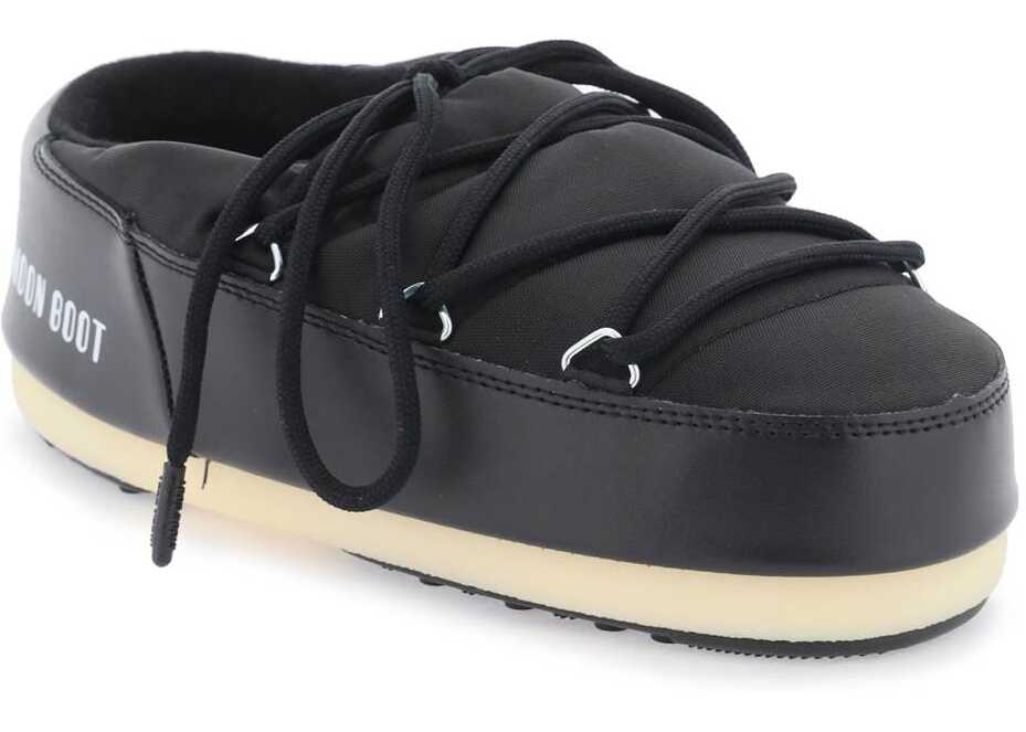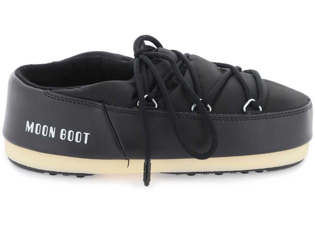 Icon mules from Moon Boot made of water-repellent nylon with iconic crossed lacing, thermoplastic rubber midsole and anti-slip rubber outsole. Two-footed and multi-size.