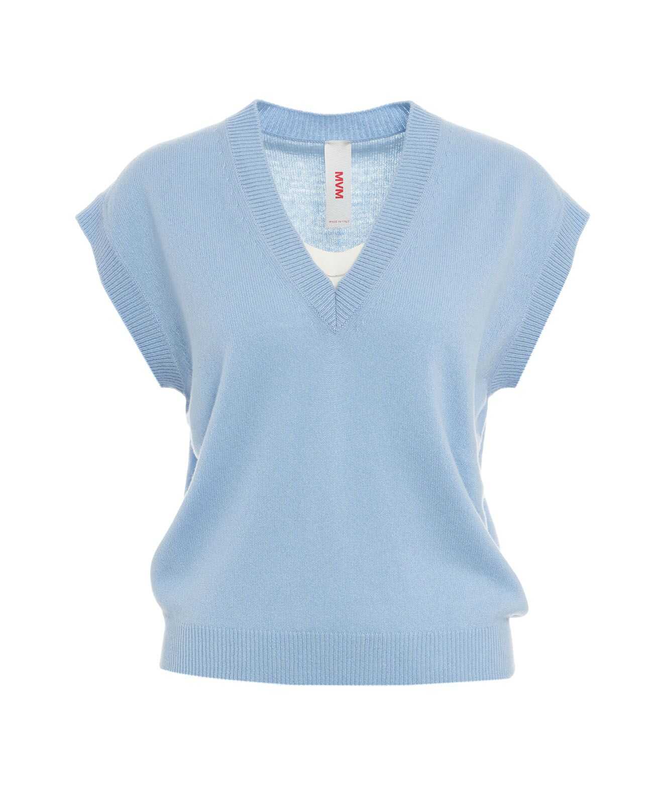 Elevate your style with this luxurious V-neck cashmere gilet from MVM. Made from 100% cashmere in a beautiful blue color, this knitwear piece is perfect for any occasion. Hand wash for easy care. Add a touch of elegance to your wardrobe today!