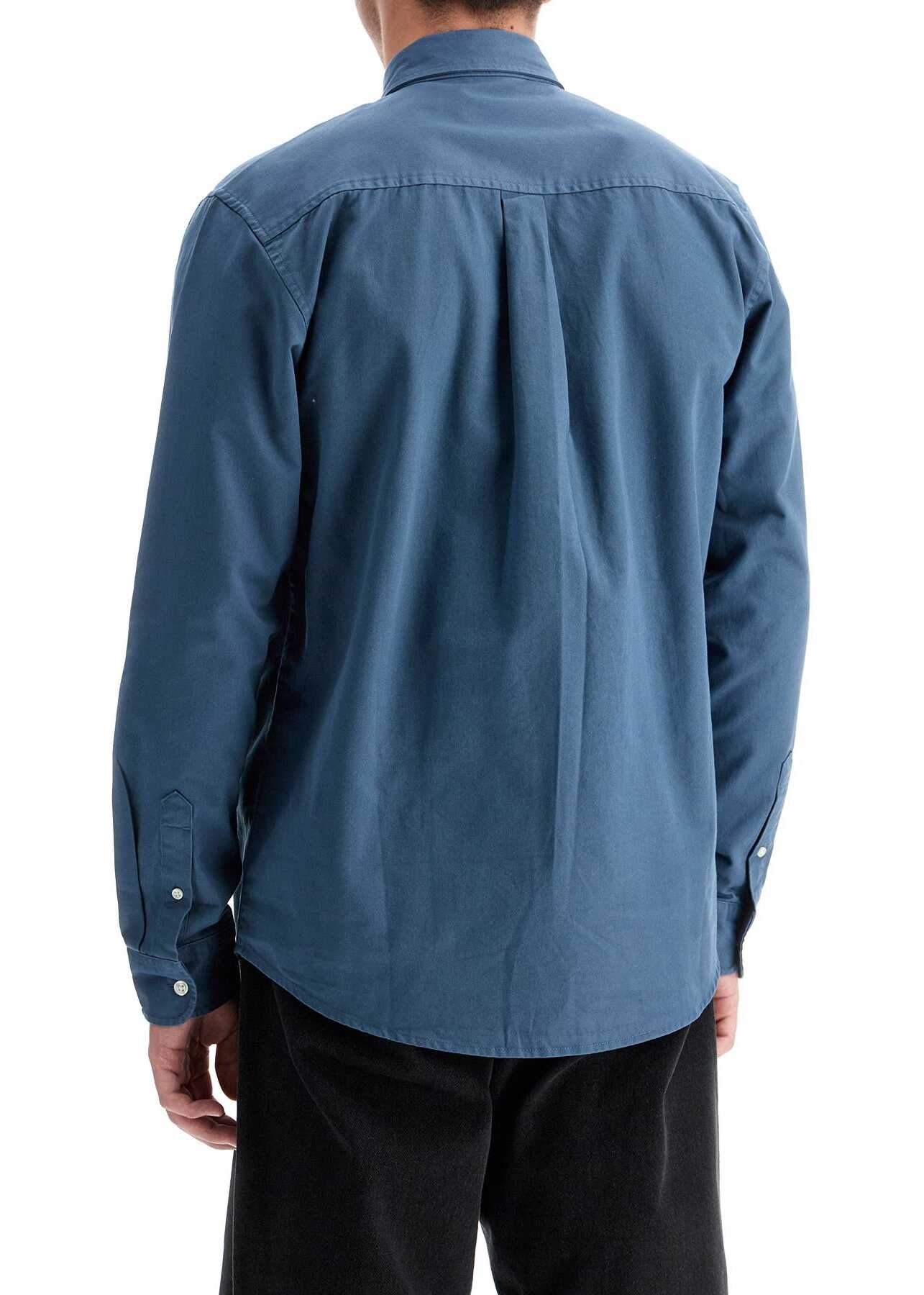 This Carhartt WIP casual shirt is made of medium weight cotton twill with a button-down collar and barrel button closure. Finished with rounded cuffs and an embroidered logo detail on the chest, it has a regular fit. The model is 182 cm tall and wears size M.