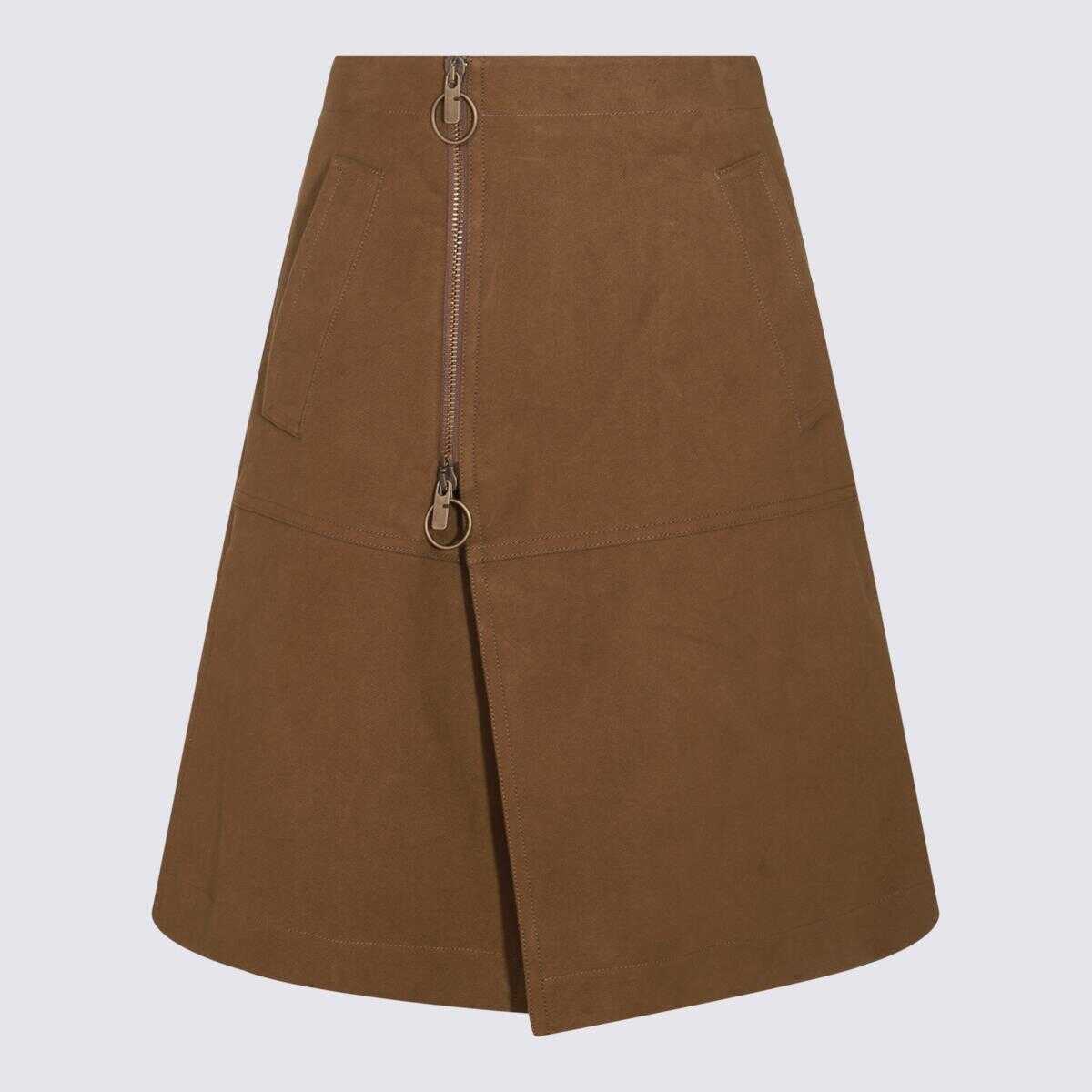 Brown cotton skirt from Burberry featuring zip fastening, flared shape and midi length.