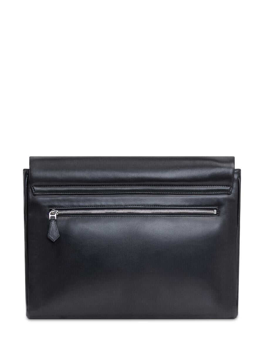 Black-colored lambskin handbag. Flap closure with hidden magnet. Adjustable and removable shoulder strap. Leather lining and interior flat pocket. Printed logo on front. Width: 40 Height: 29 Depth: 4