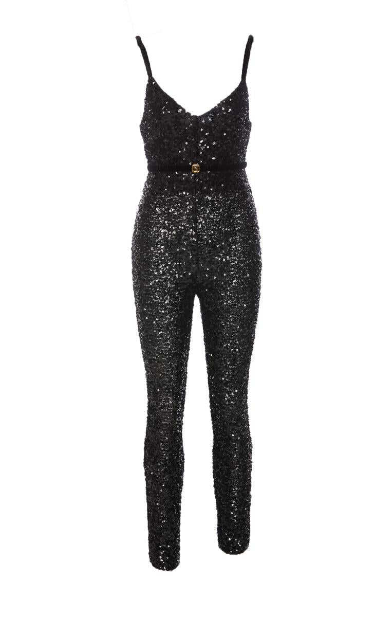 Elisabetta Franchi black suit, zip closure on the back, v-neck, belt detail on waist, elasticized fit, sleeveless, EU SIZE (IT)