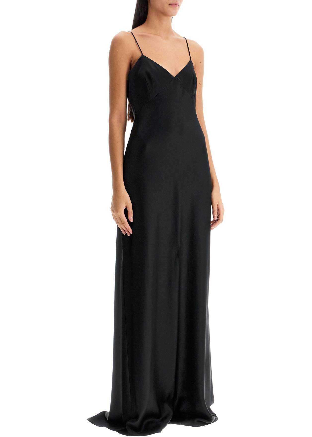 This long slip dress from the Max Mara Pianoforte collection is made of pure silk satin with a wide neckline and thin straps. The fluid and slightly flared silhouette falls to the floor. It has a drop-shaped closure on the back with a zip and button. The interior is lined. The model is 177 cm tall and wears an Italian size 40.