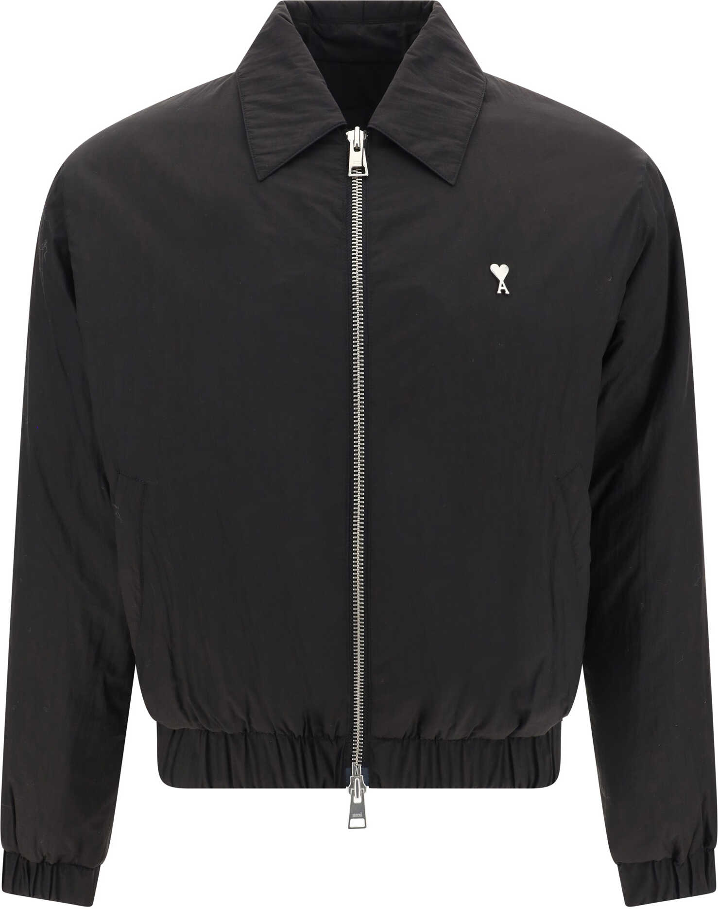 Jacket by Ami Paris, classic collar, front closure by double-slider zipper, two side welt pockets with flap, elasticized hem, elasticized cuffs, three-dimensional plaque with iconic brand logo, monochrome pattern, regular fit.