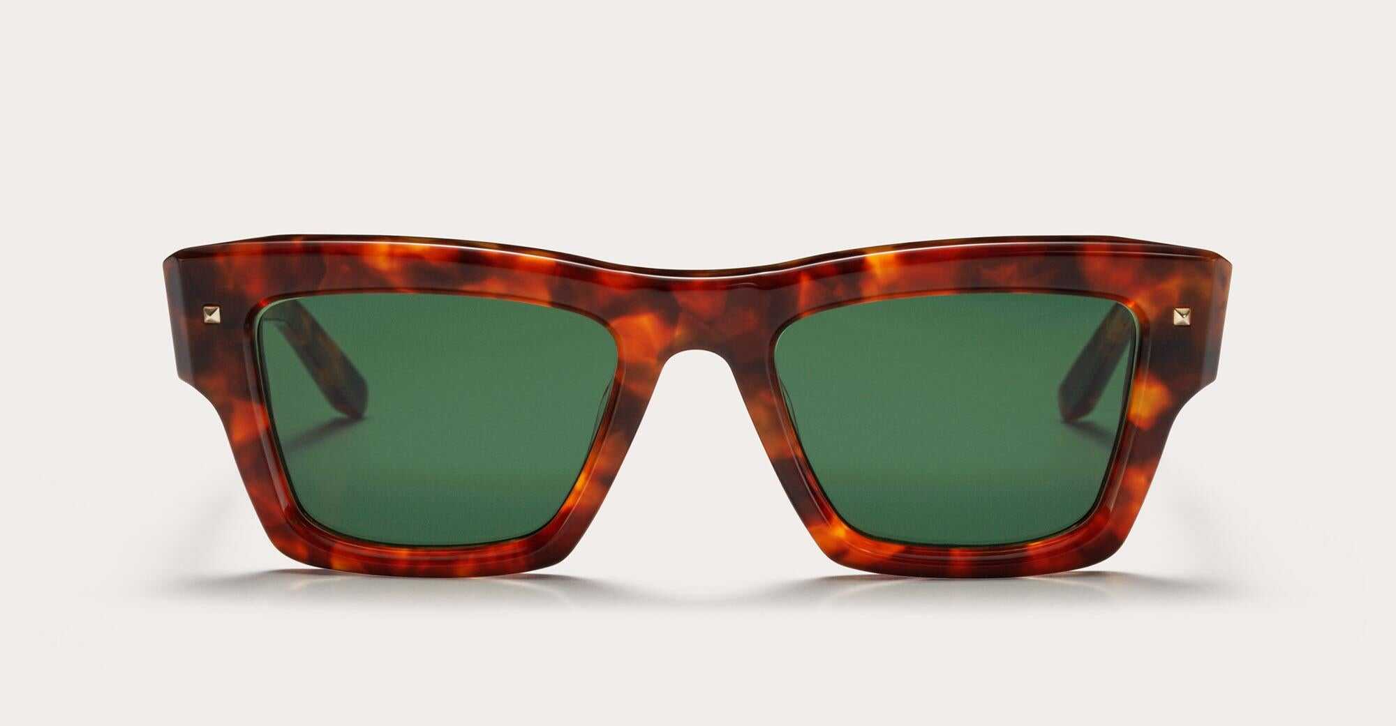 Valentino XXII - HONEY TORTOISE (VLS-106C-53) sunglasses pay homage to the Valentino Creative Director, inspired by his personal frame. Featuring a modern interpretation of the retro 60 s Wellington shape made iconic by Golden Era Italian cinema, easy to wear 8mm thick front that s elegantly sculpted to maximize volume and wearability with recognizable embellishments including iconic 3D Valentino rockstuds on the front, temples, temple tips, five-barrel hinges and custom wirecore.