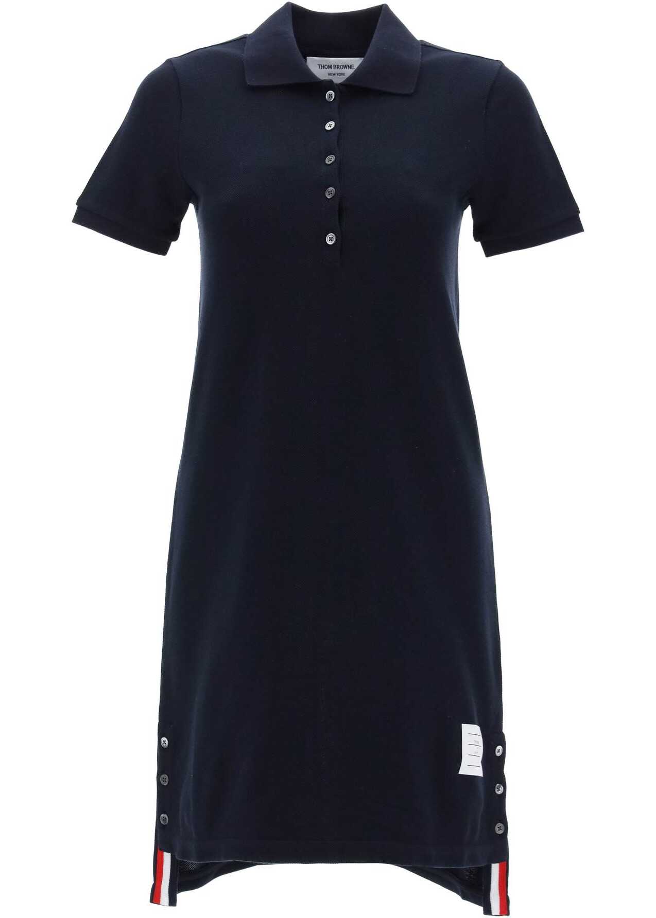 Thom Browne reinterprets the classic polo shirt into a knee-length dress with a straight silhouette, elongated back hem and buttoned side slits. An iconic tricolor knit band is inlaid on the back, running along its entire length. Made of pure cotton piqué jersey, the dress features a five-button closure, flat knit collar and short sleeves finished with ribbing. Regular fit. The model is 177 cm tall and wears size IT 38.