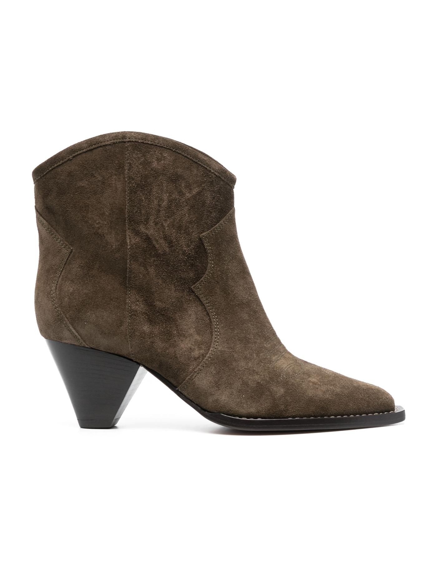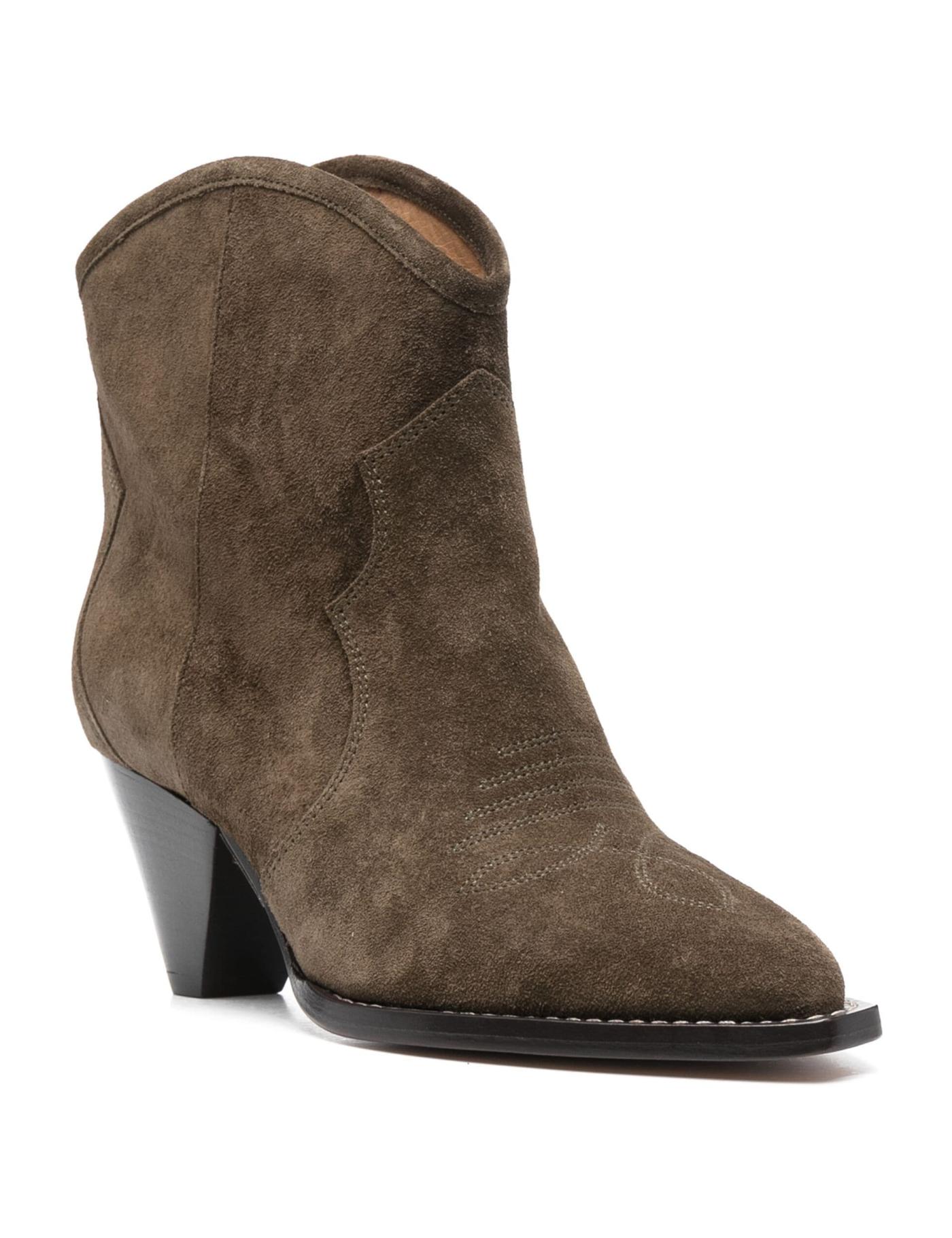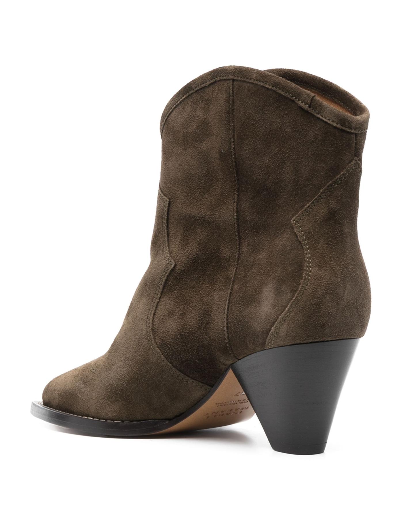 Isabel Marant's Darizo ankle boots show the brand's bohemian style. Crafted from dark green suede, they have a Western-inspired style that sits atop a cone heel.
