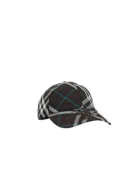 Burberry's baseball cap crafted in nylon twill with Burberry Check pattern and Equestrian Knight patch embroidered on the visor. It features adjustable buckled backstrap and unlined interior.