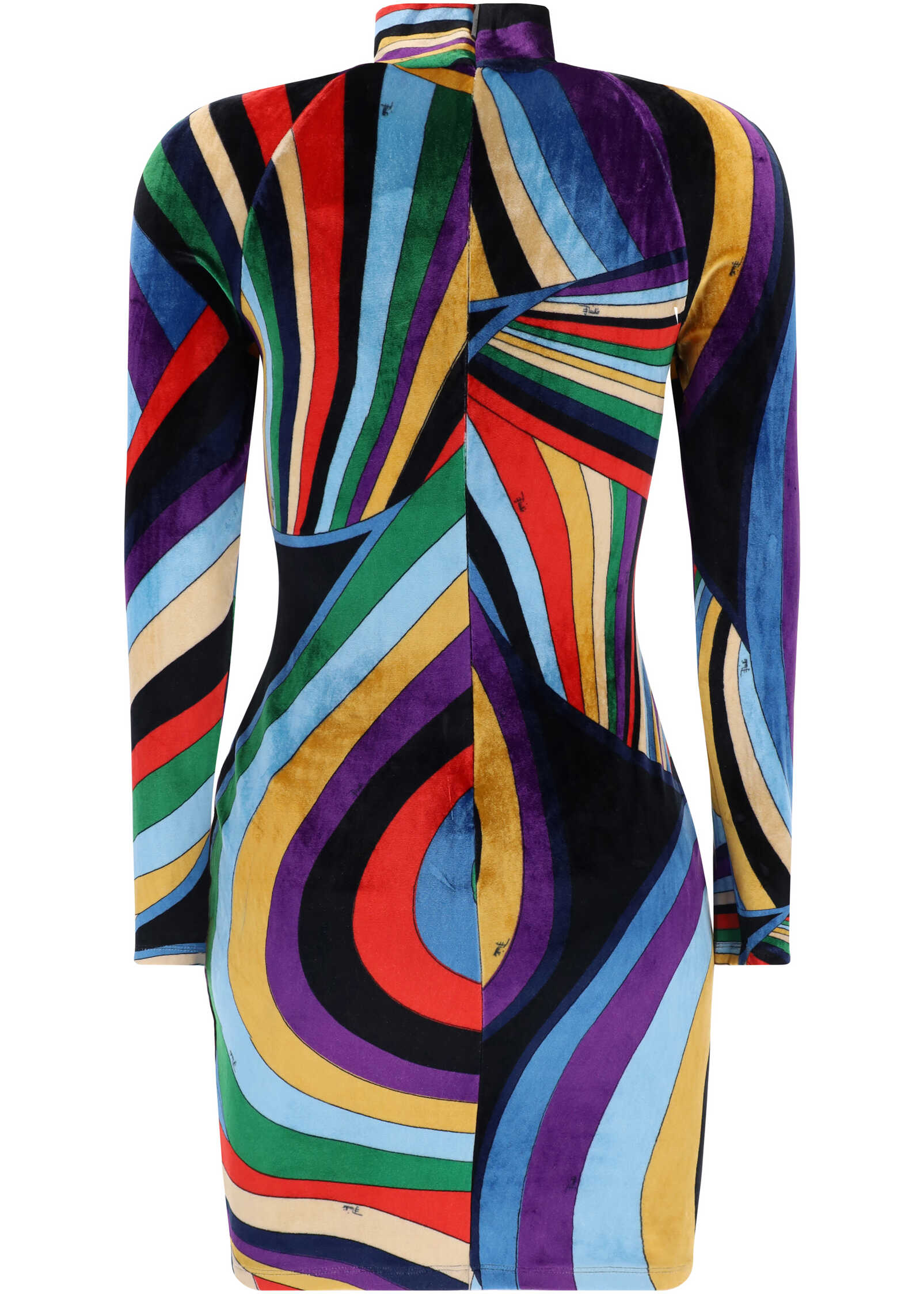 Mini Dress by Pucci, long-sleeved design, mock neck, velvet design, brand's iconic all-over printed Iris pattern, fitted fit.