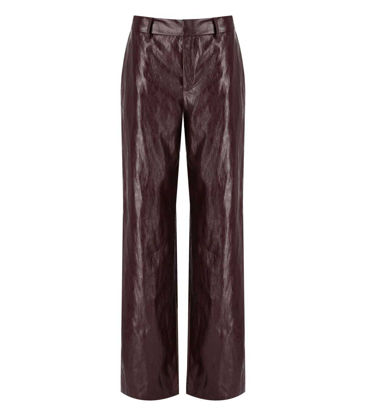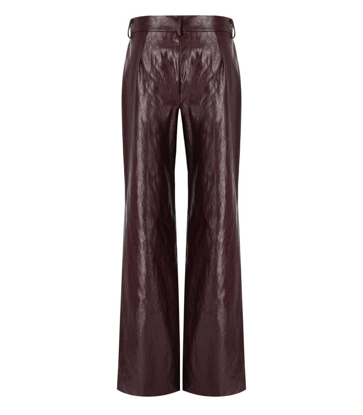 Vinyl effect burgundy trousers from Federica Tosi featuring a zip and hook closure. It has side pockets. Composition: 70% polyurethane, 21% viscose, 3% cotton.