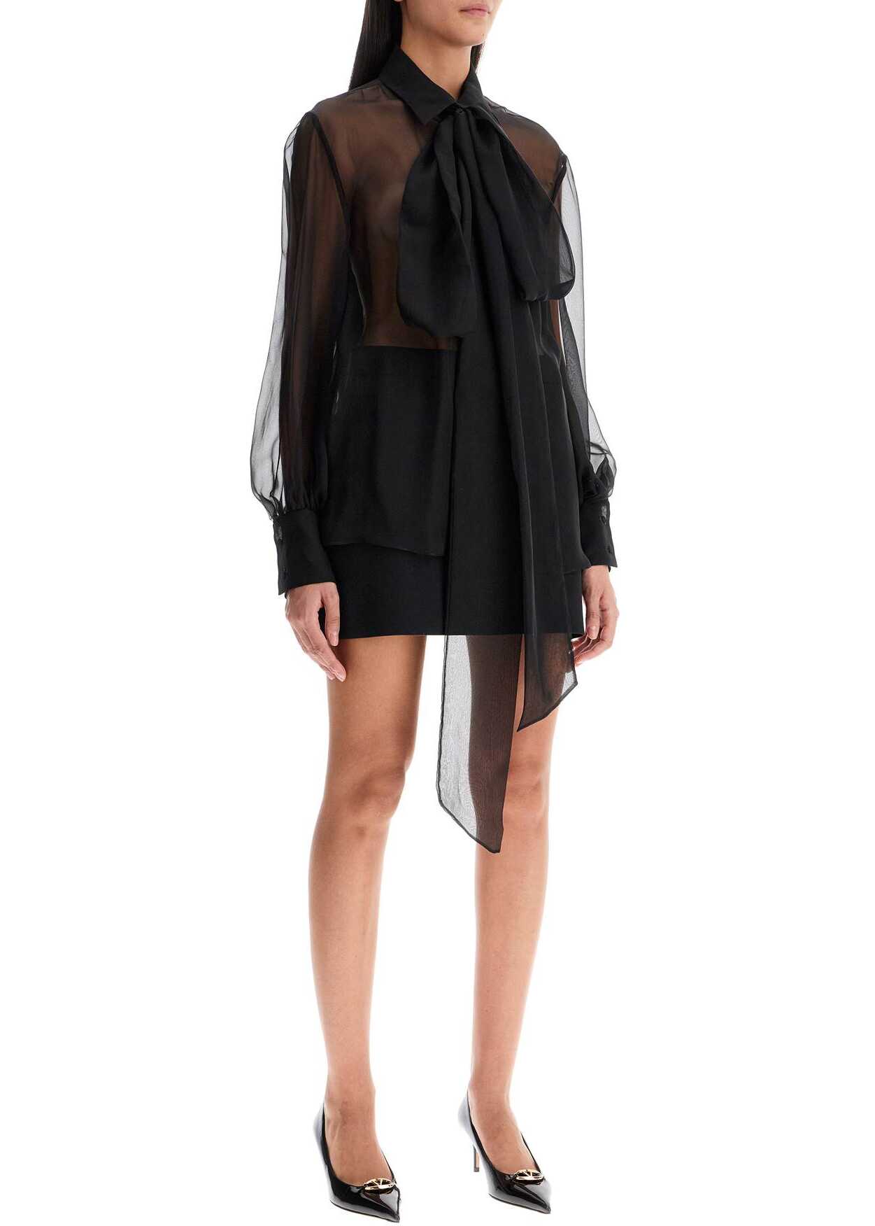 Crafted in fluid pure silk Georgette with a soft cut, this Valentino shirt stands out for its classic collar decorated with a removable maxi lavallière. It features hidden button closure with covered buttons, two-button cuffs and a shaped hemline. The model is 177 cm tall and wears an IT size 40.