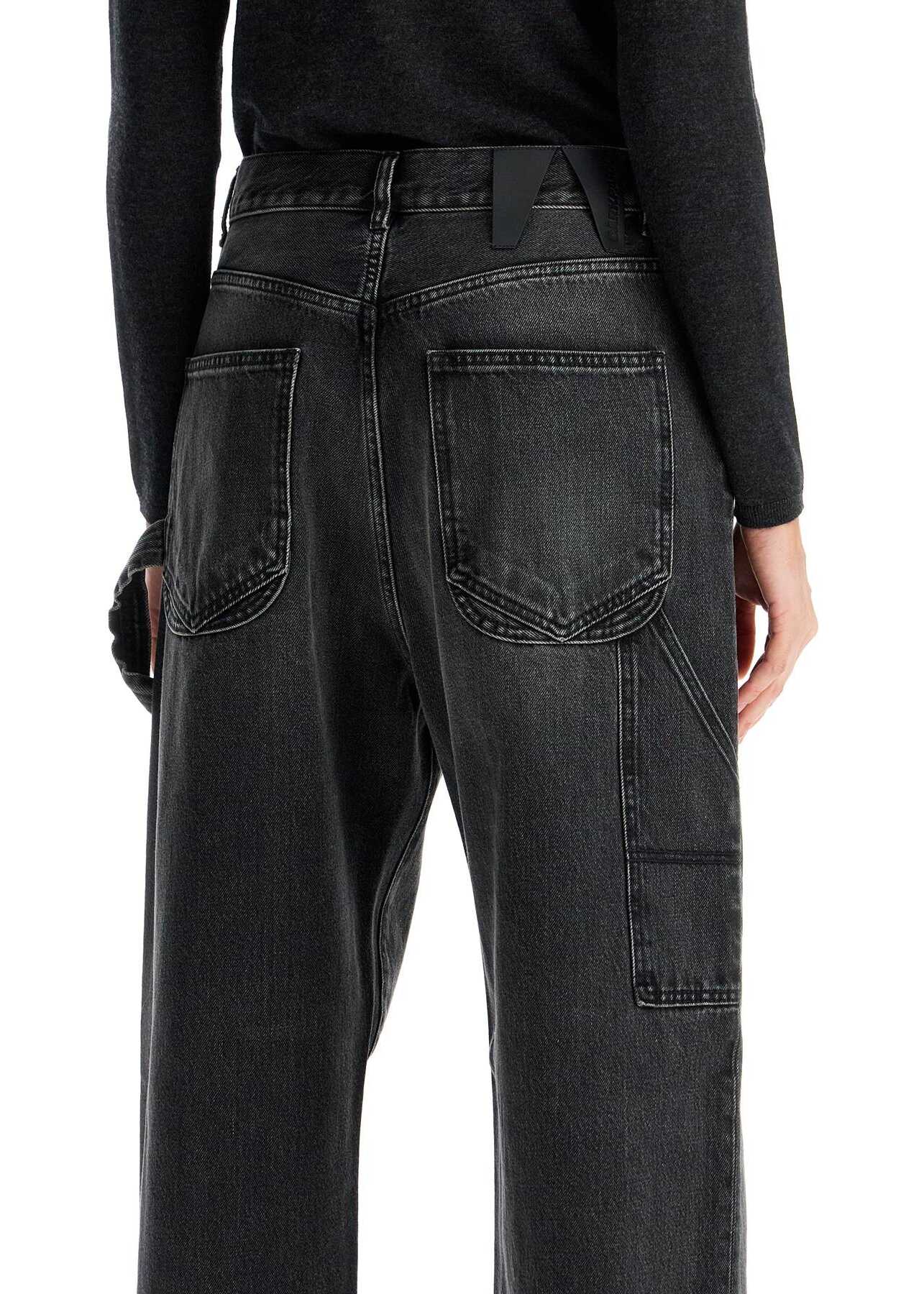 Darkpark's Lisa jeans are made of pure cotton denim with a vintage dark wash. They feature a five-pocket design, enhanced by a hammer loop and workwear pockets on the legs. The closure is adorned with a branded button and hidden zipper, while belt loops and a branded jacron patch can be found on the back waistband. These straight-cut jeans have a relaxed fit and are finished with frayed cut-outs at the hem. The model is 177 cm tall and wears a size