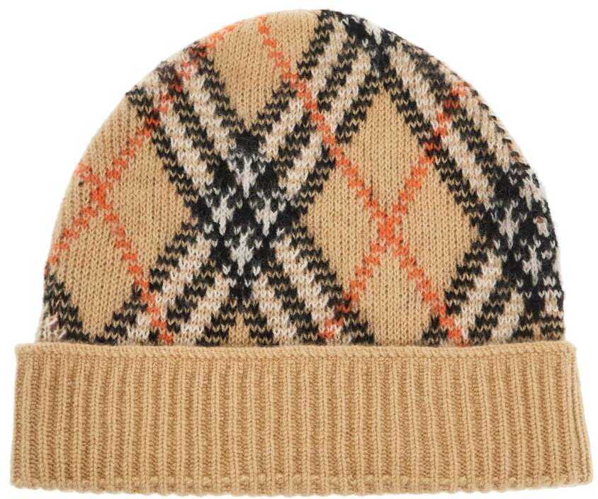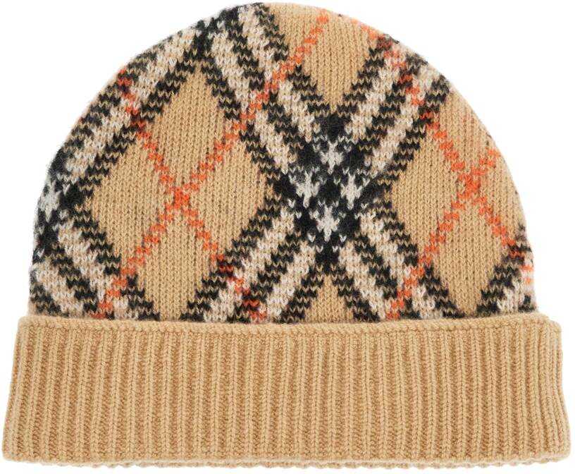 This Burberry beanie hat is made of cashmere knit with the iconic Check jacquard pattern and a ribbed cuff. One size fits all.
