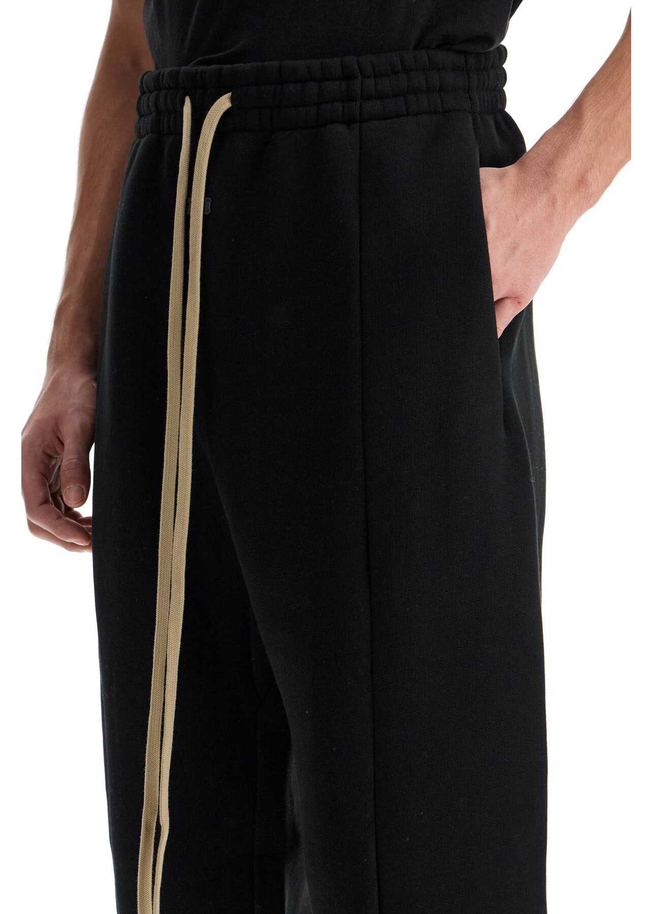 Fear of God joggers made in compact technical cotton jersey, internally lined with fleece. They are signed with a leather logo patch on the front. They feature an adjustable elastic waistband with a large drawstring, side pockets and elasticated cuffs at the bottom. Relaxed fit. The model is 182 cm tall and wears a size M.