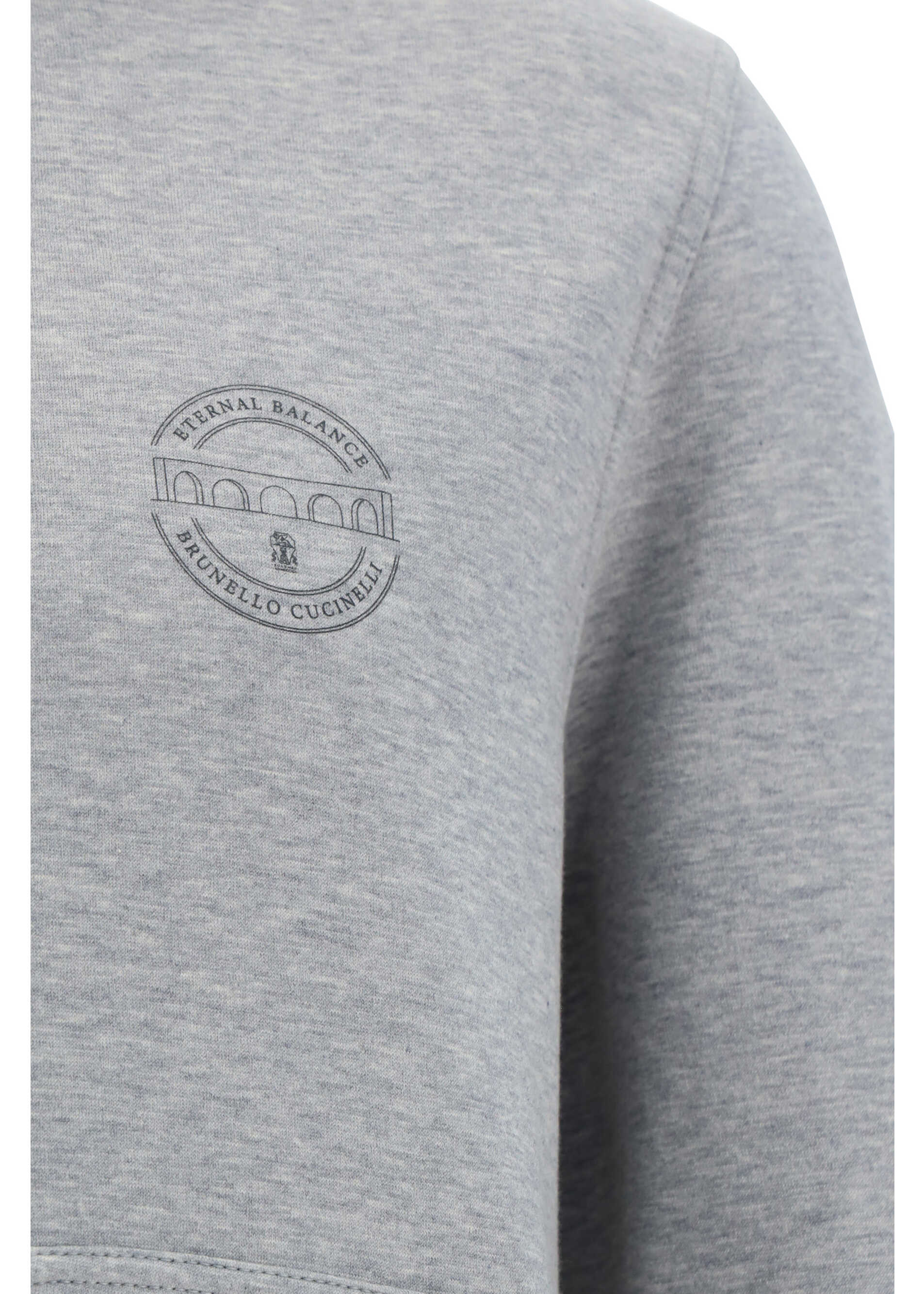 Cotton Hoodie by Brunello Cucinelli features hood with adjustable drawstring, ribbed cuffs, ribbed hem, front closure by a double-slider zipper, two welt patch pockets on front, iconic brand monogram printed in contrast on front, regular fit.